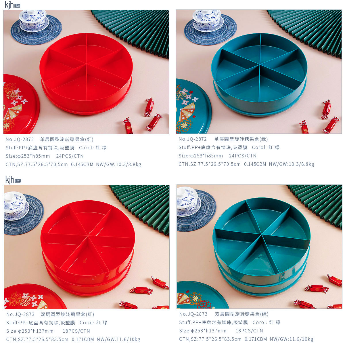 單層/雙層圓型/花型旋轉(zhuǎn)糖果盒 紅色/綠色