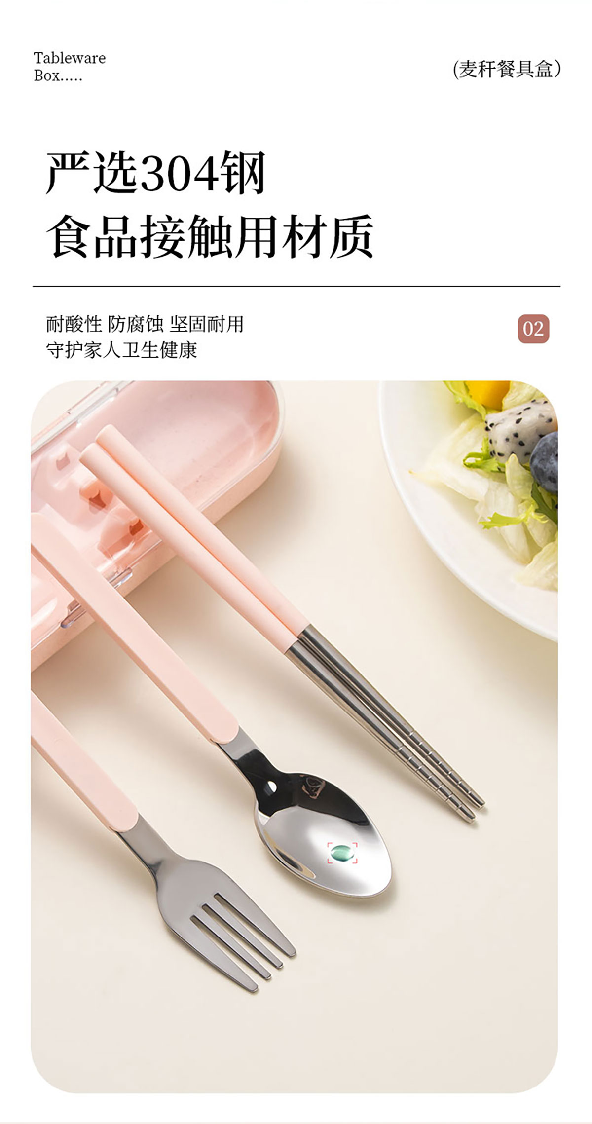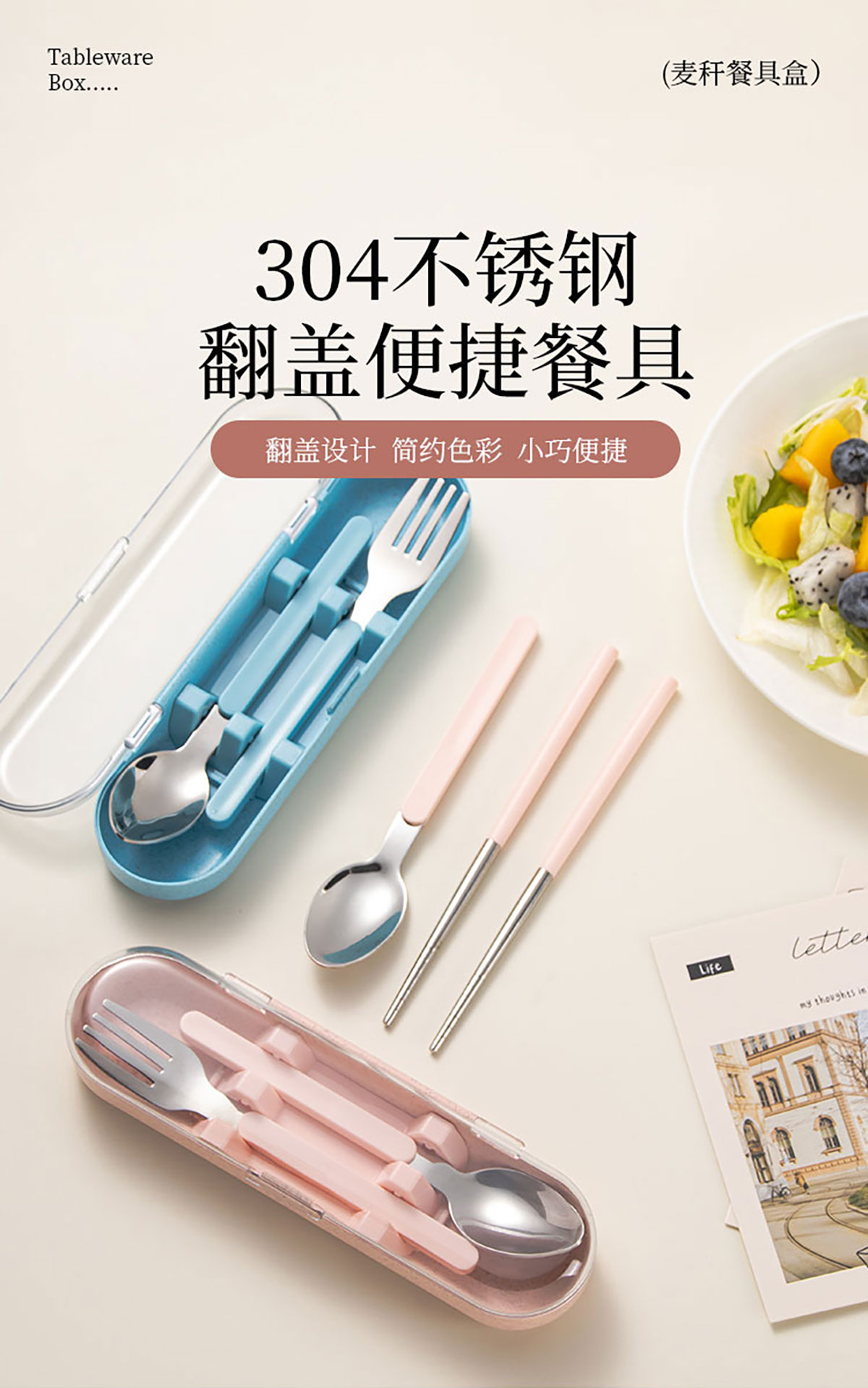麥稈便攜不銹鋼餐具叉勺/筷勺兩件套