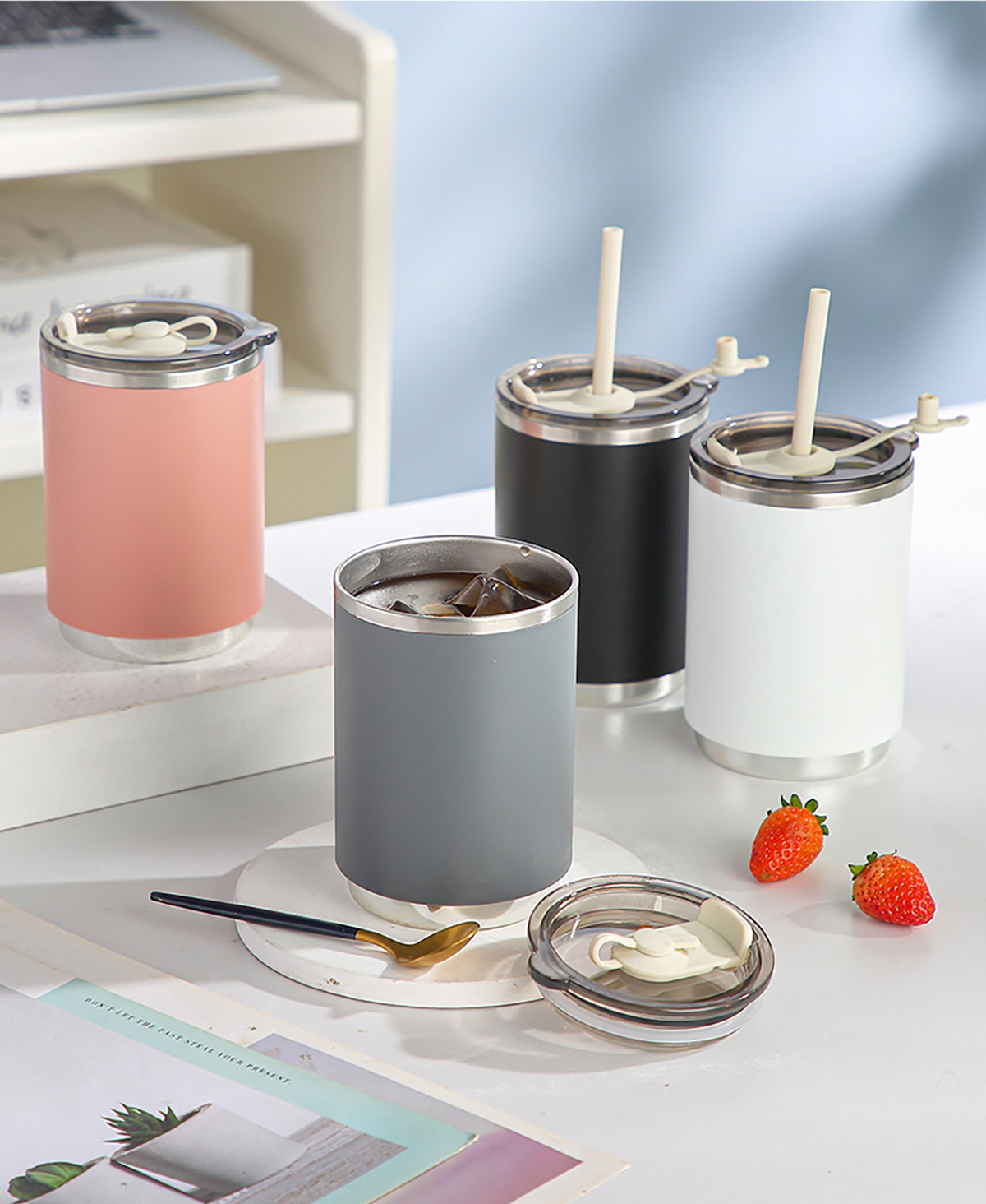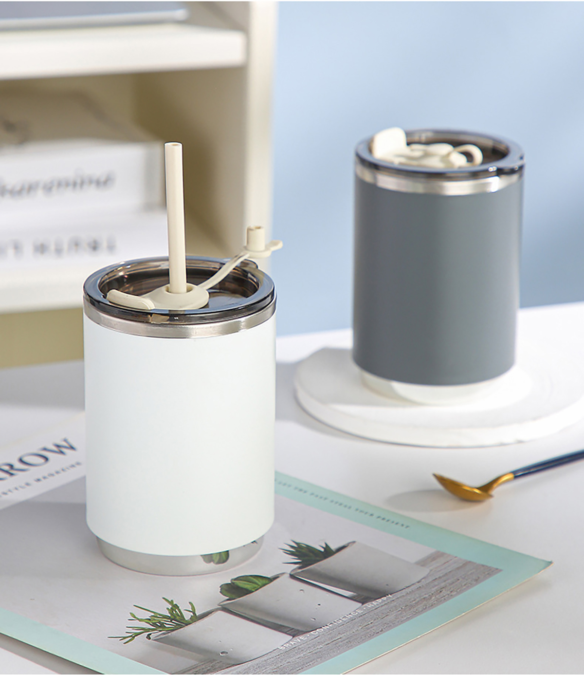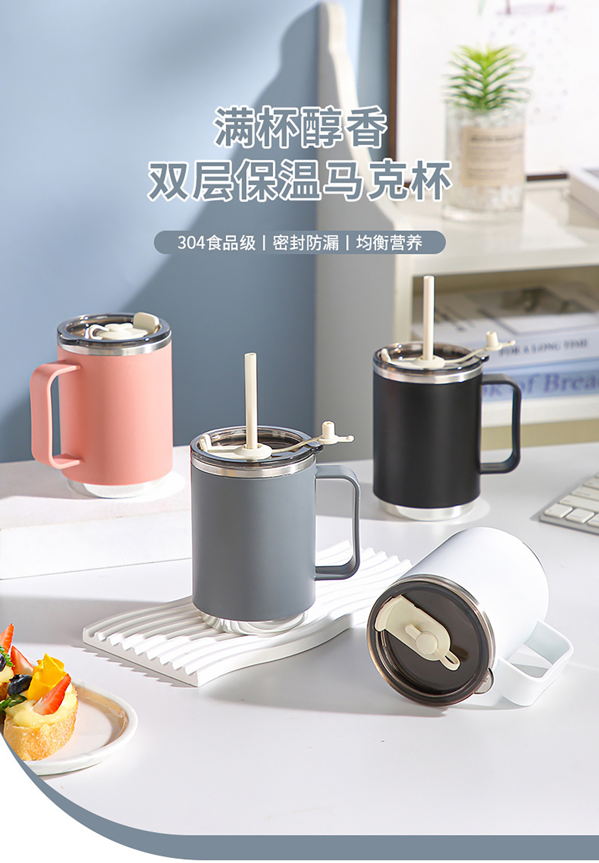 不銹鋼無柄/帶柄辦公杯(帶蓋+吸管)