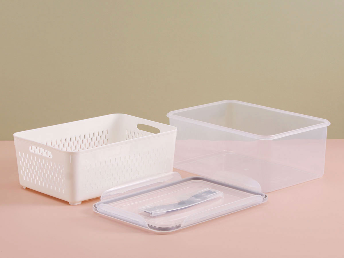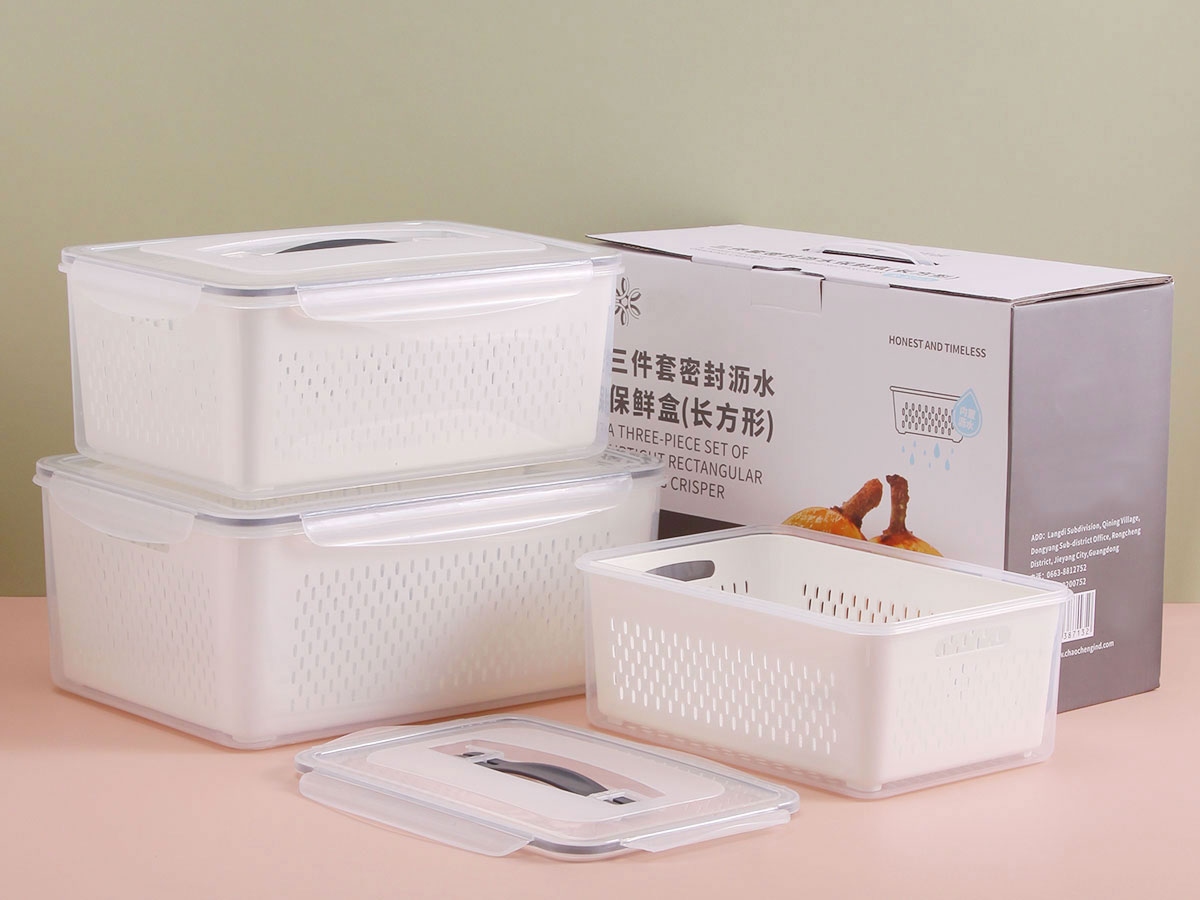 三件套長方形密封瀝水保鮮盒系列
