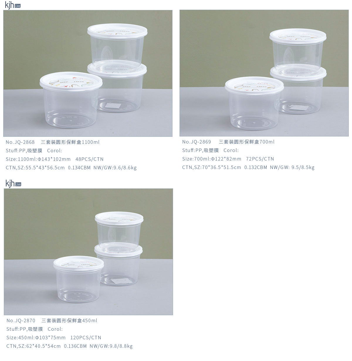 三套裝圓形保鮮盒1100ml/700ml/450ml