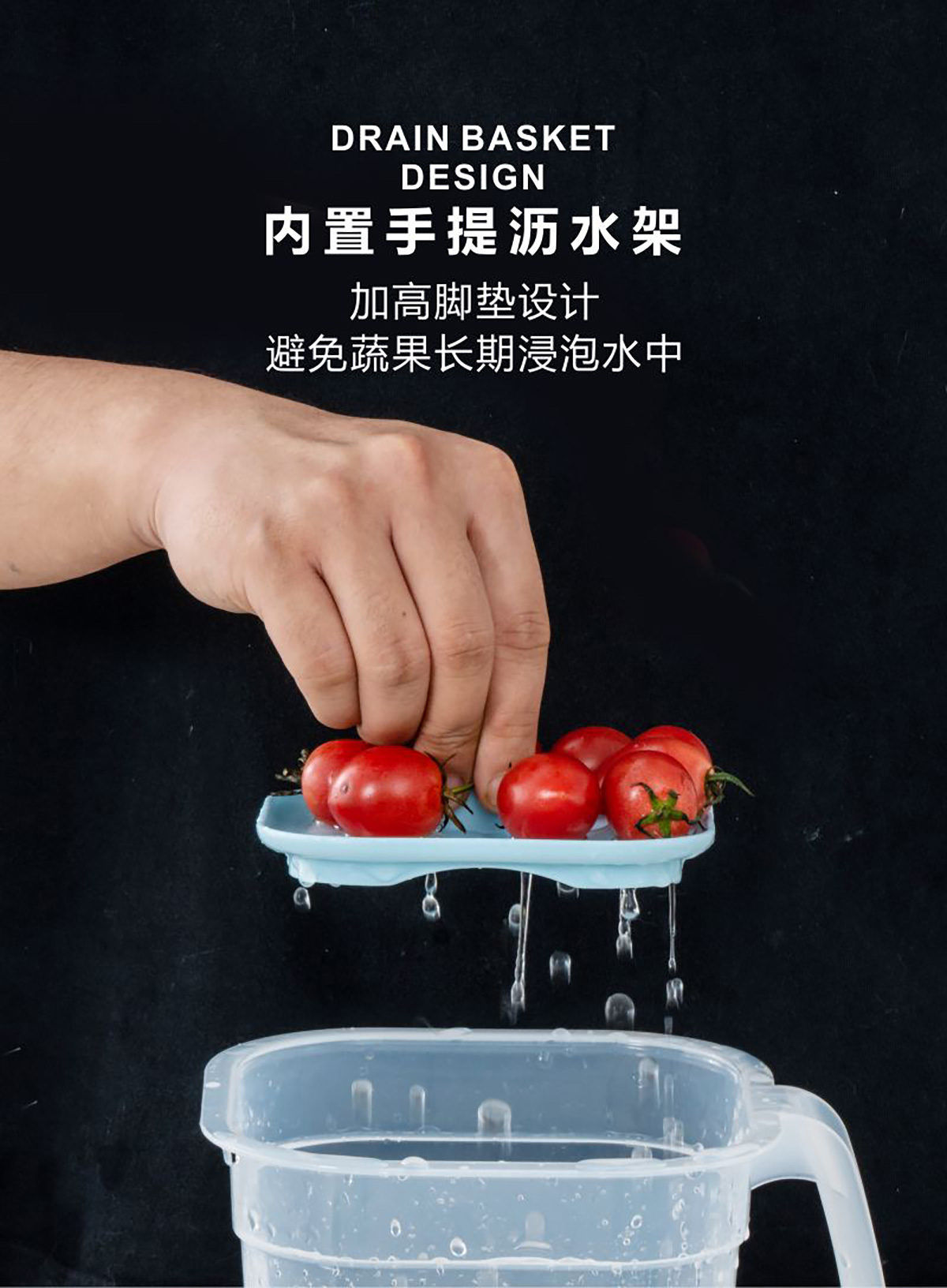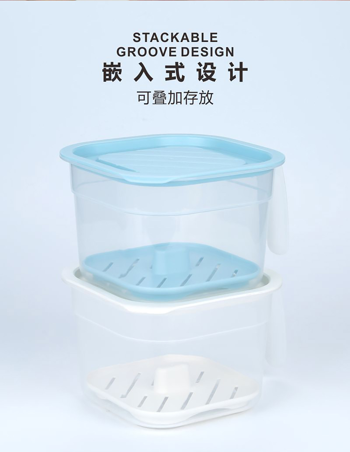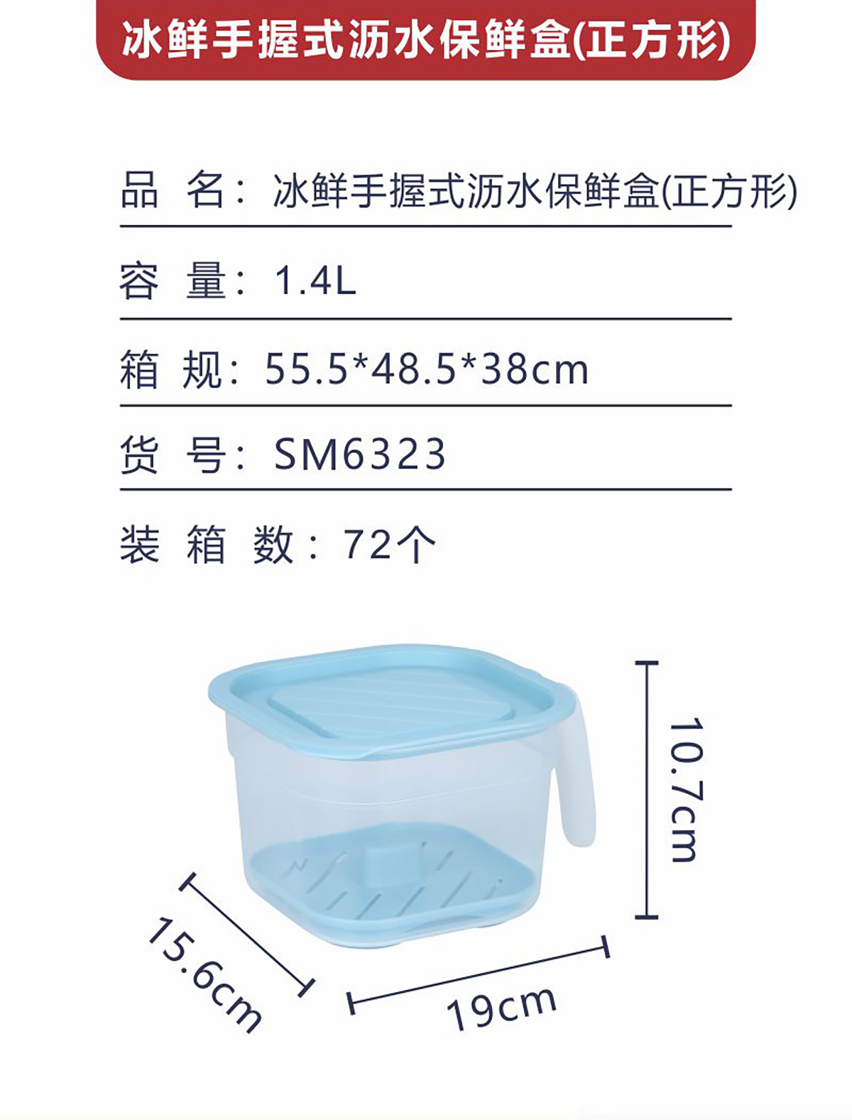 冰鮮手握式瀝水保鮮盒(正方形)1.4L