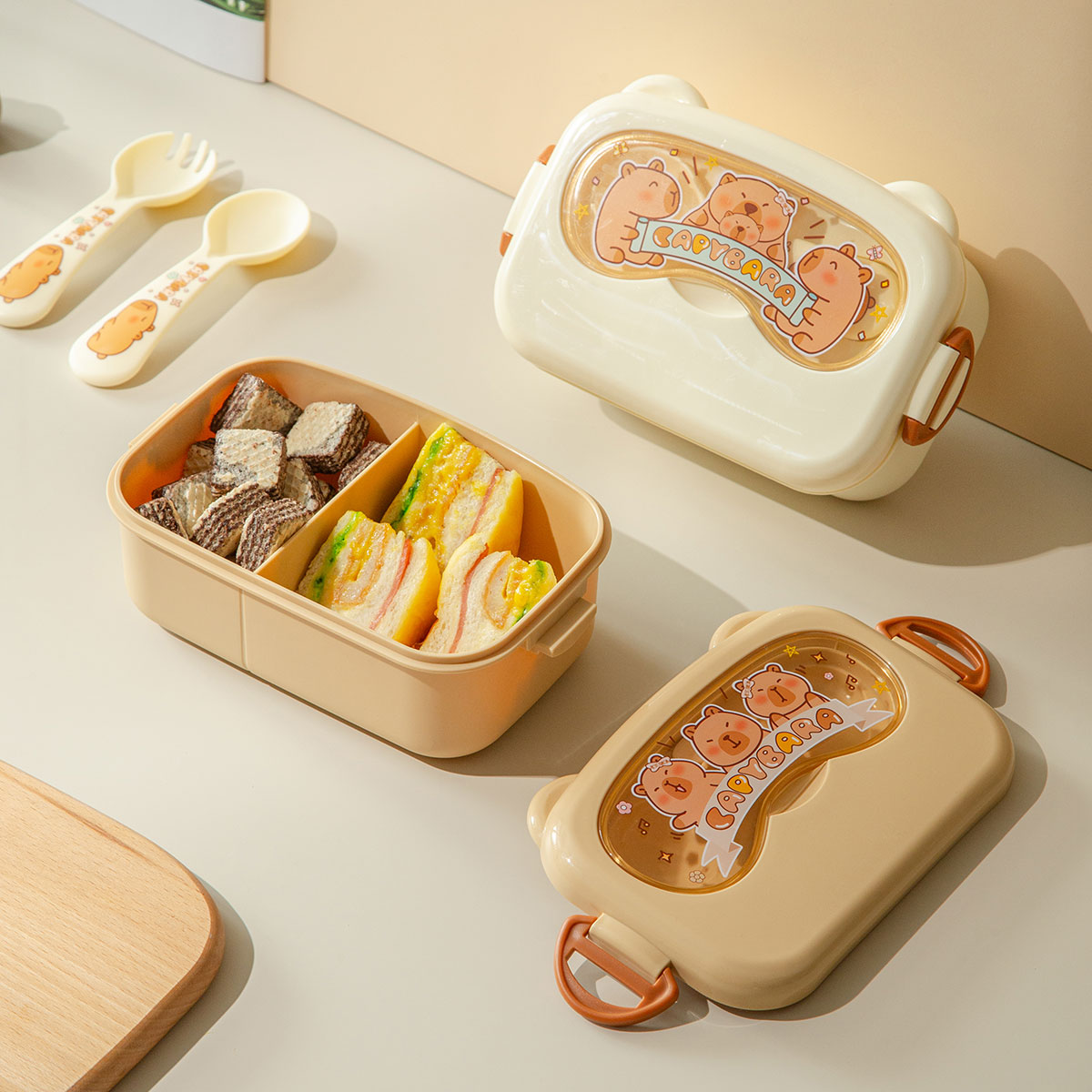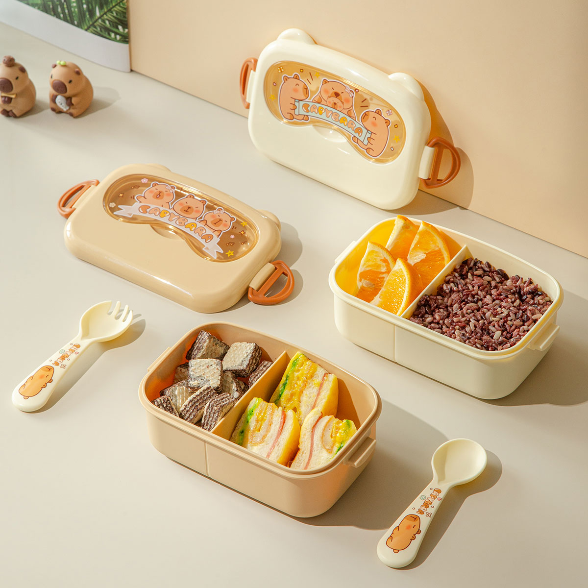 魔法豚長方形/萌鏡豚/趣照豚分格便當(dāng)盒