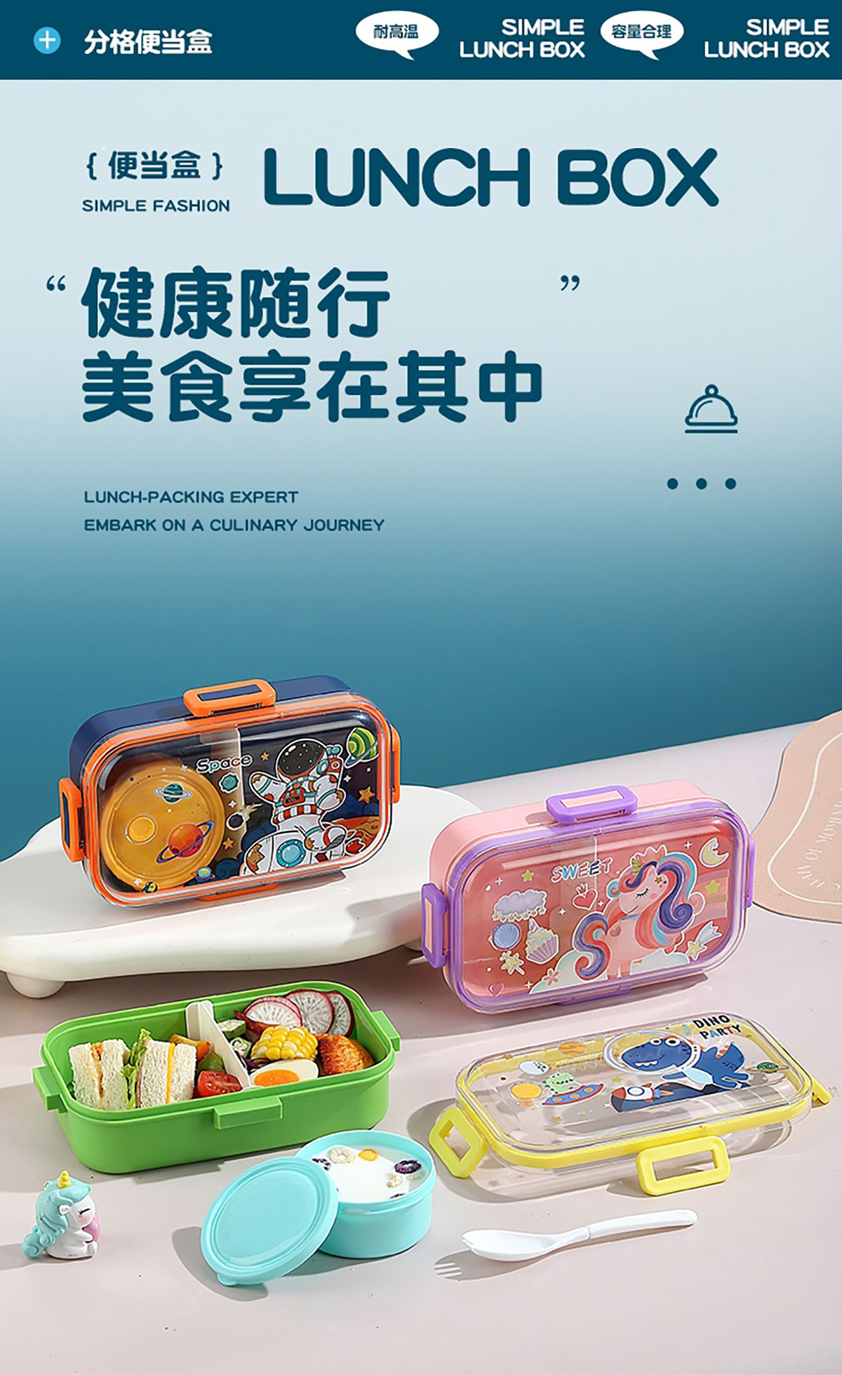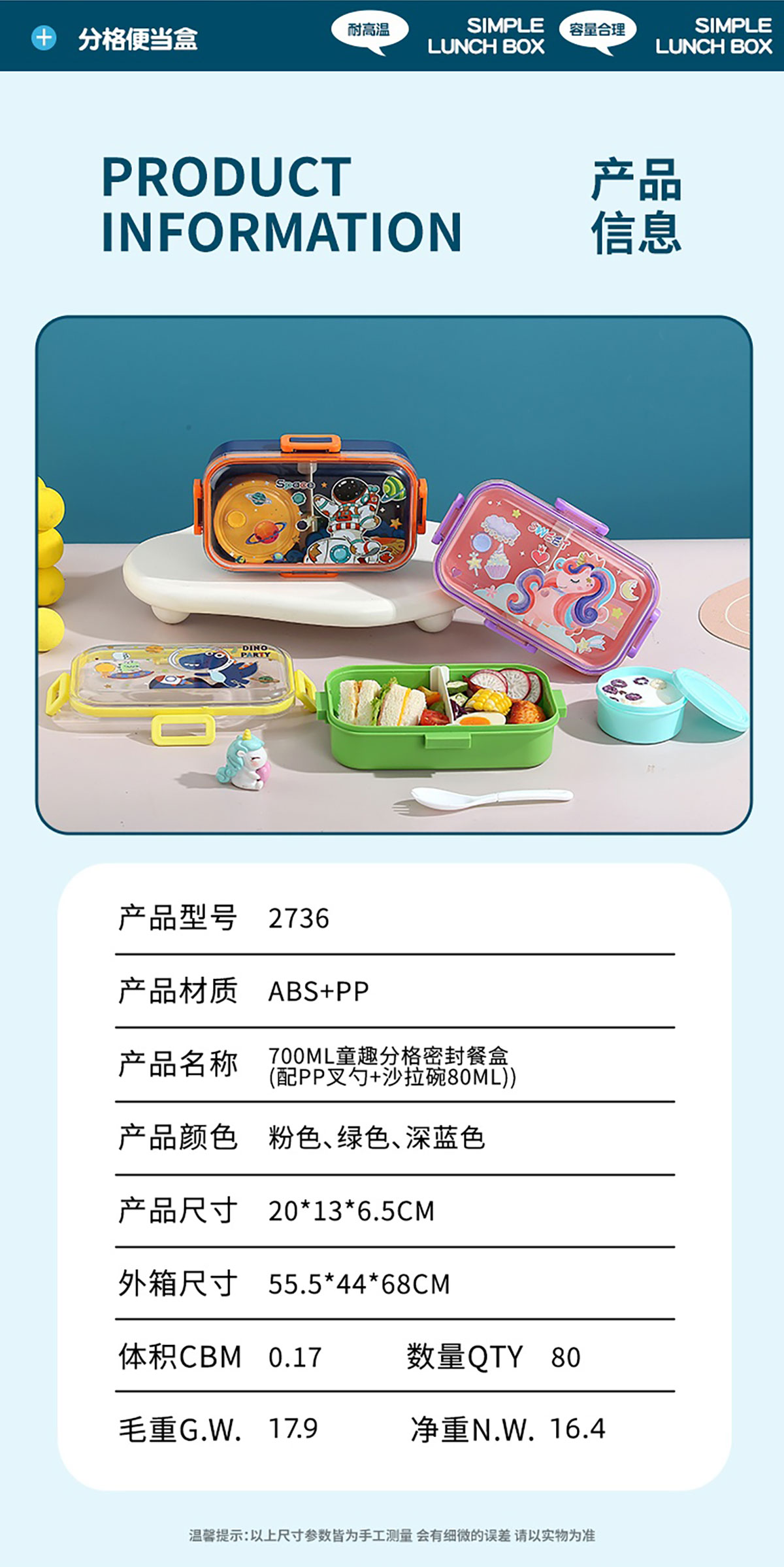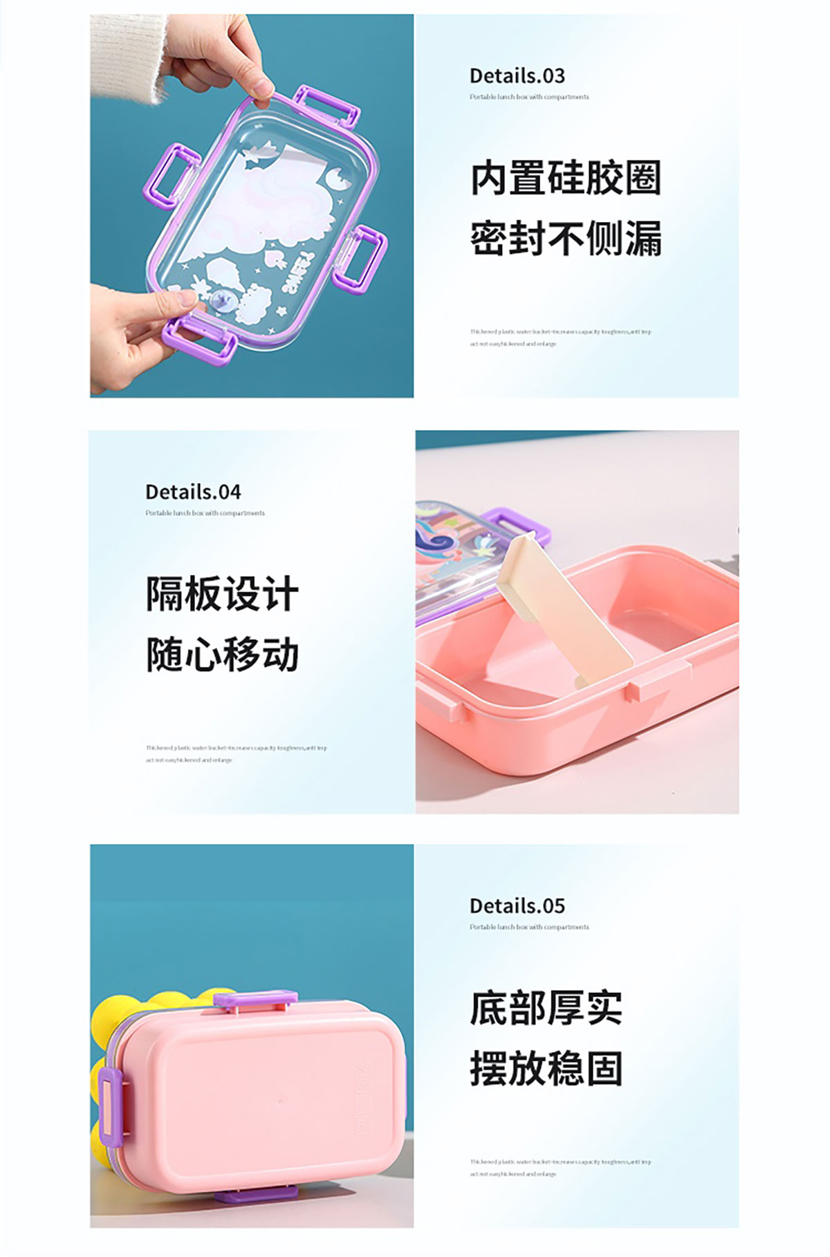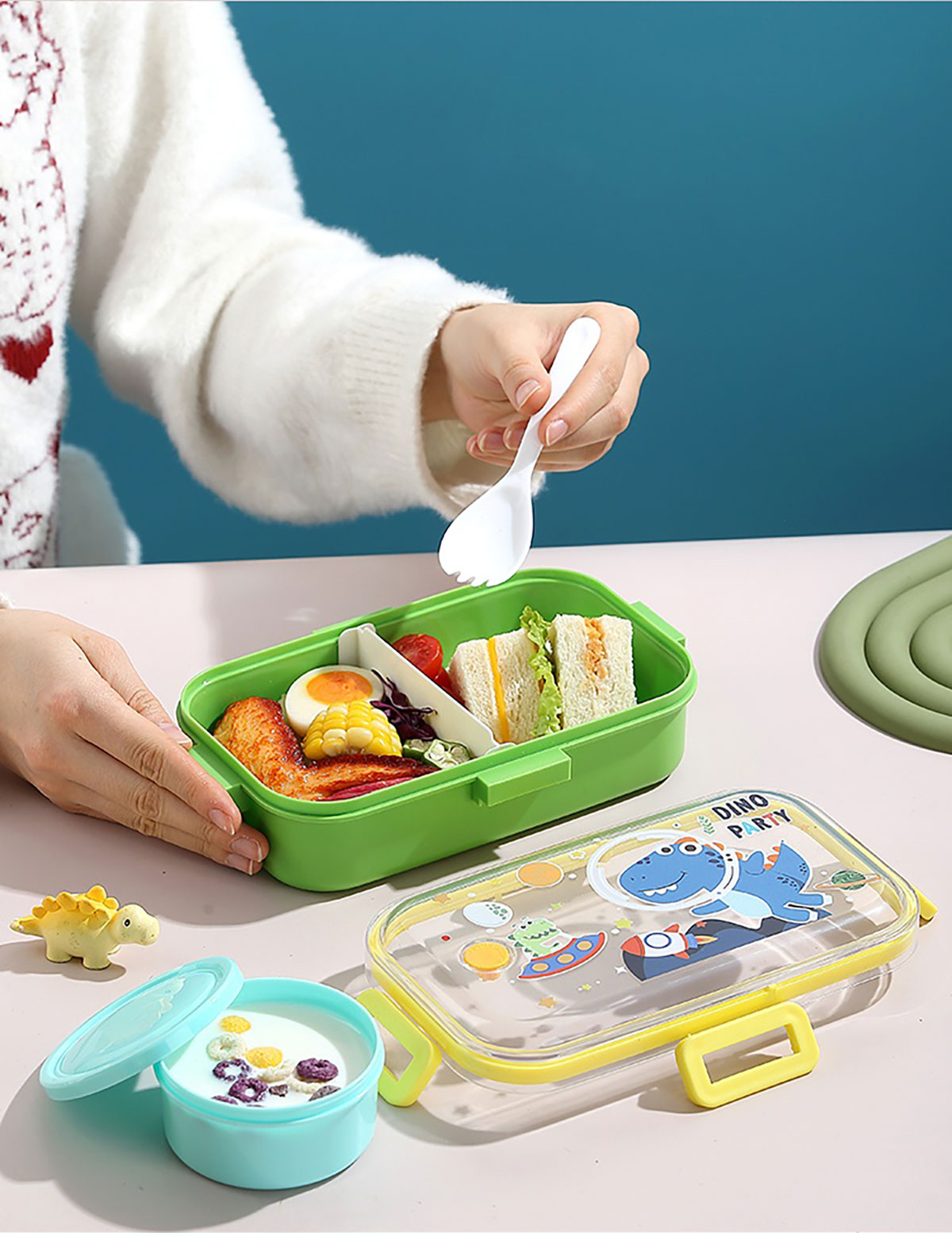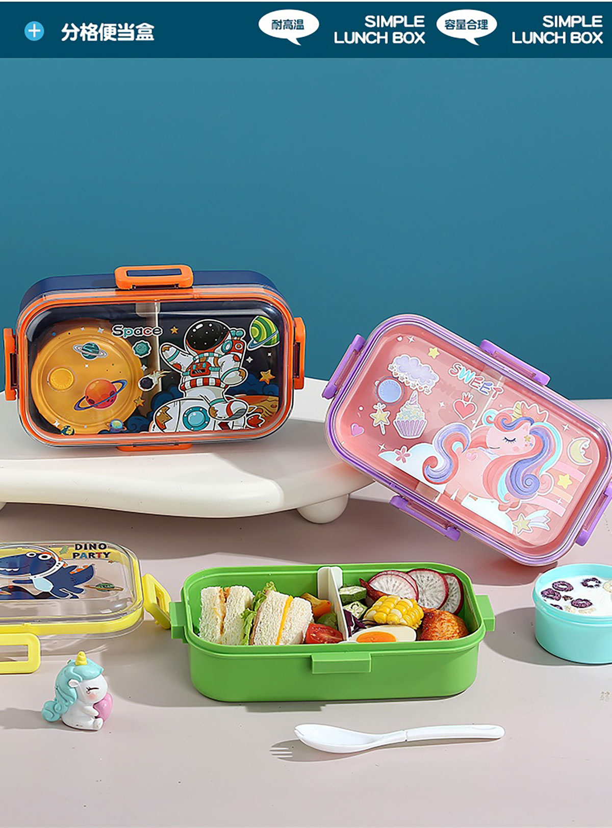 700mI童趣分格密封餐盒(配PP叉勺+沙拉碗150ml)
