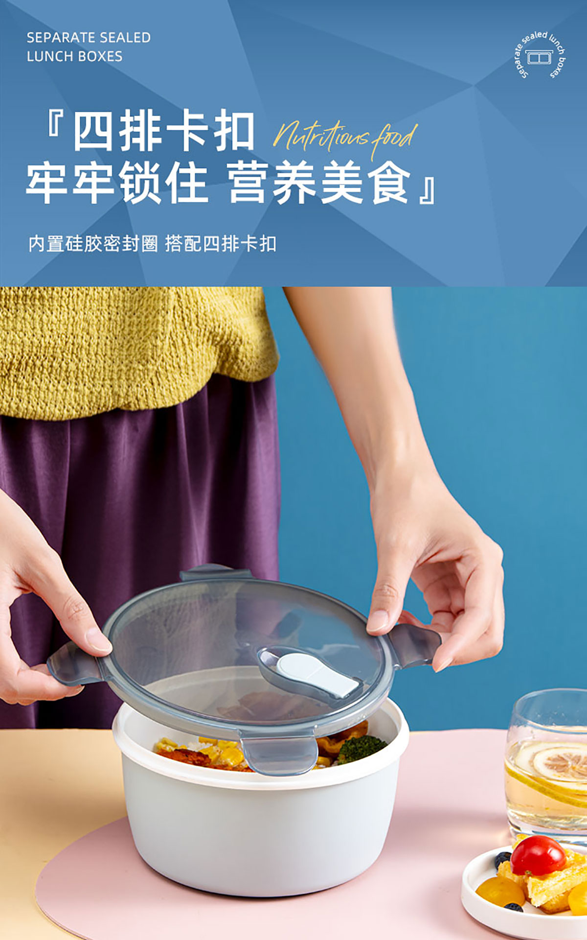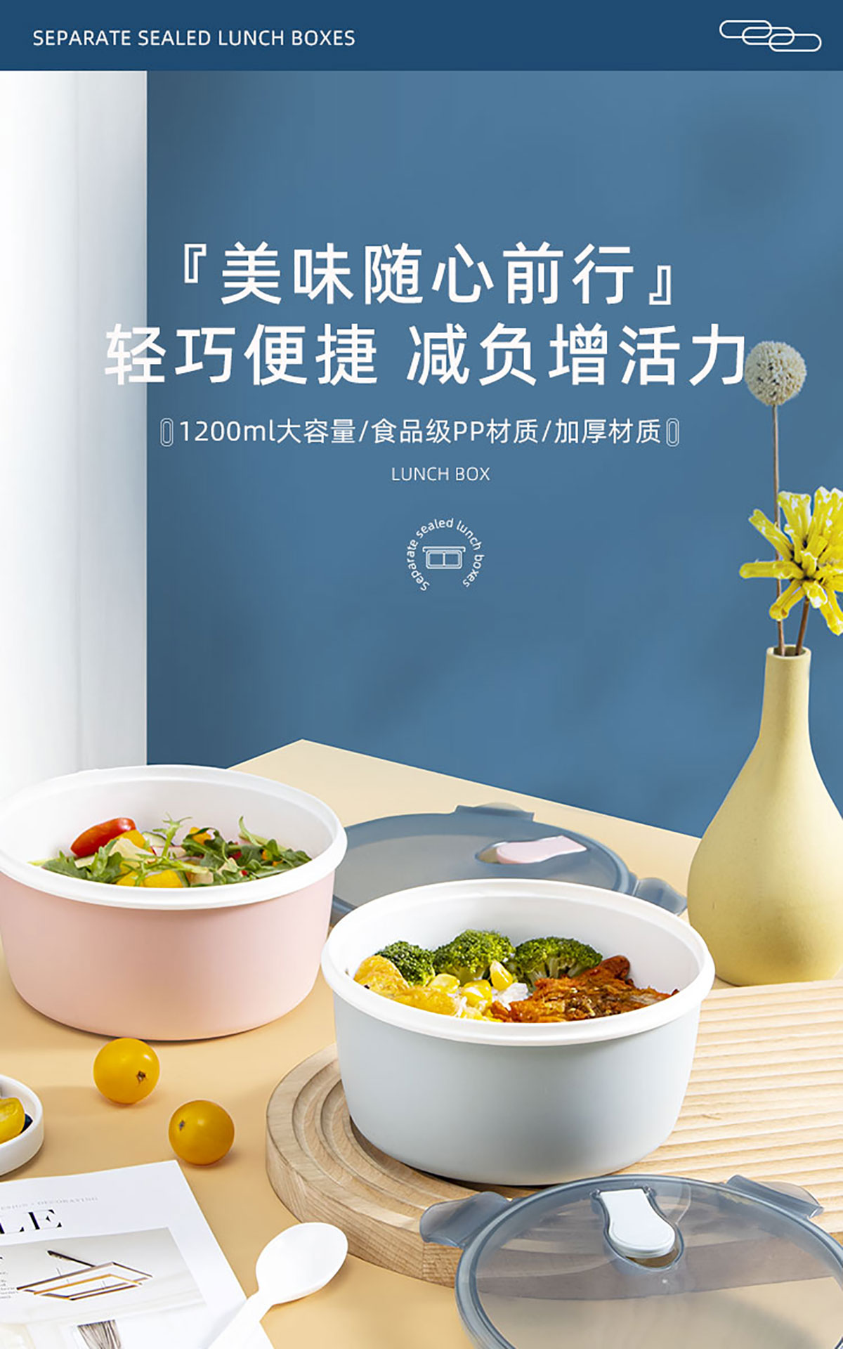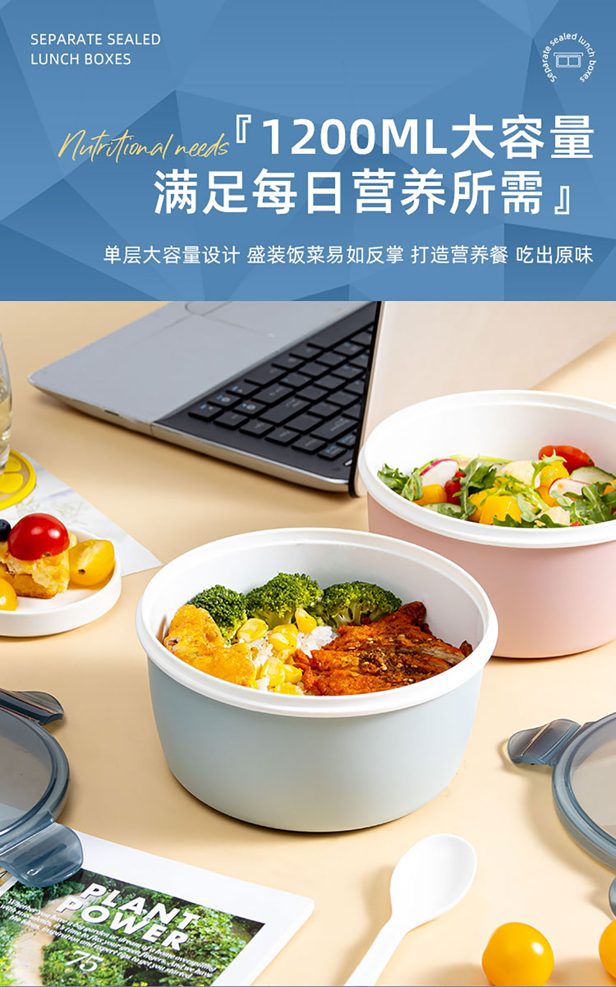 小簡圓形抗菌飯盒1200ml