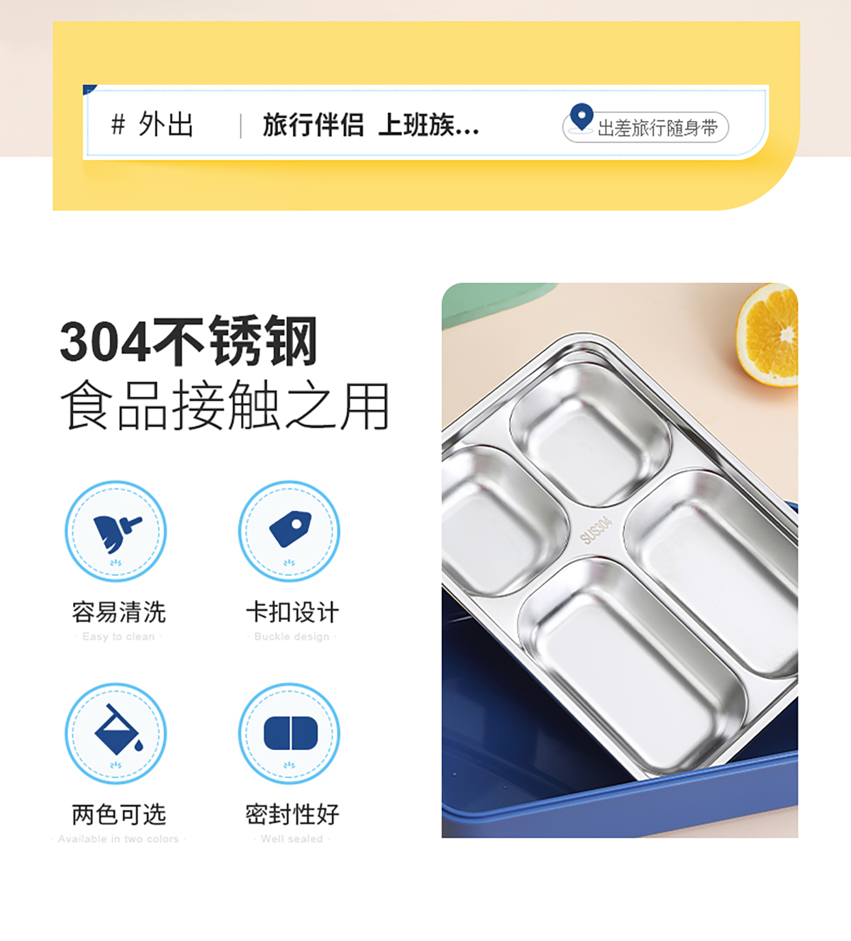 太空艙不銹鋼餐盒 3格/4格1000ml+湯碗150ml(配不銹鋼勺筷)