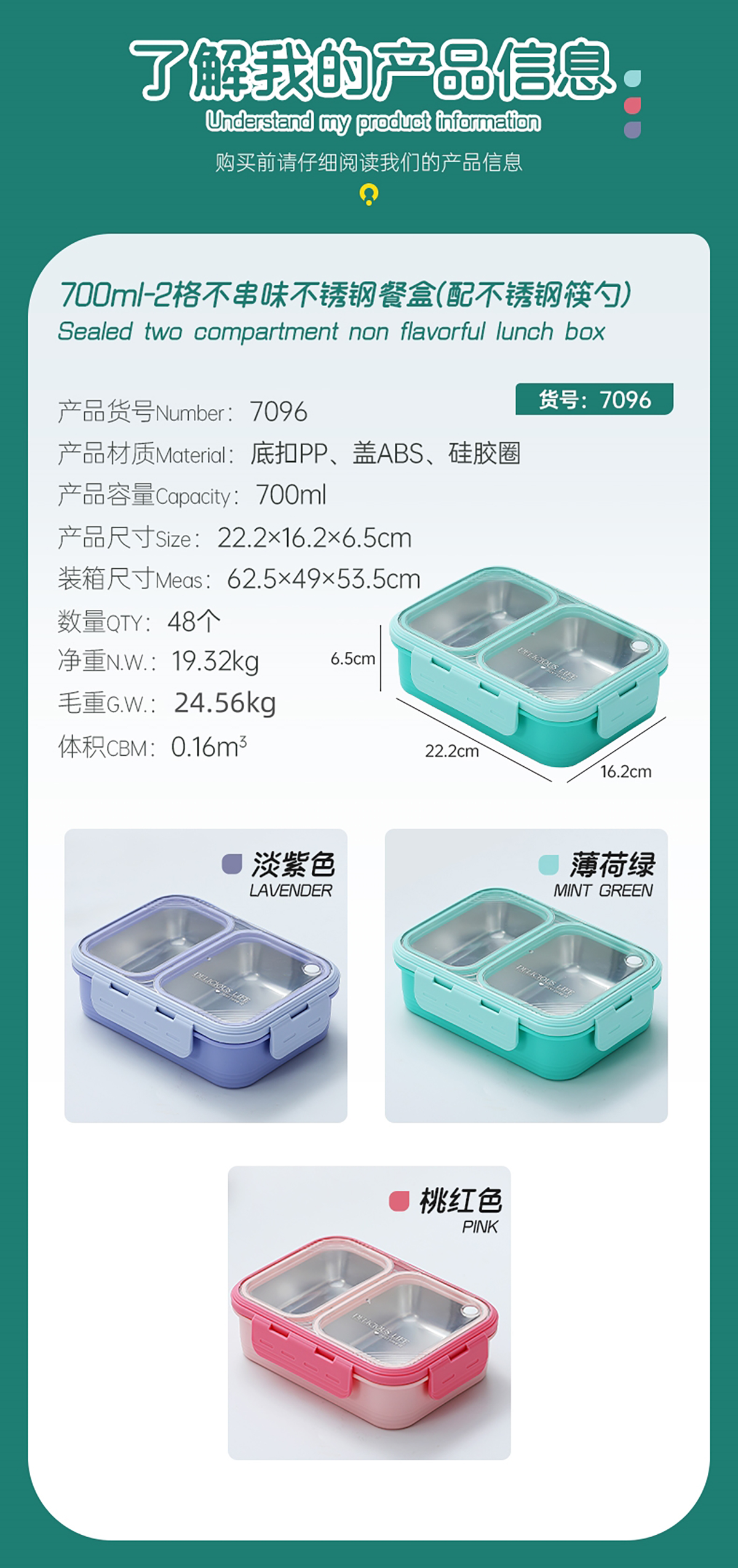 2格不串味不銹鋼餐盒700ml