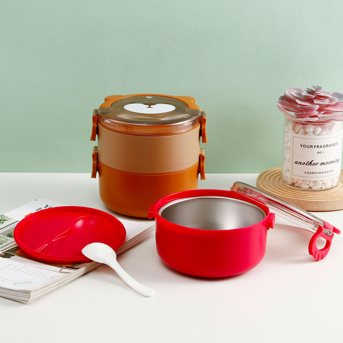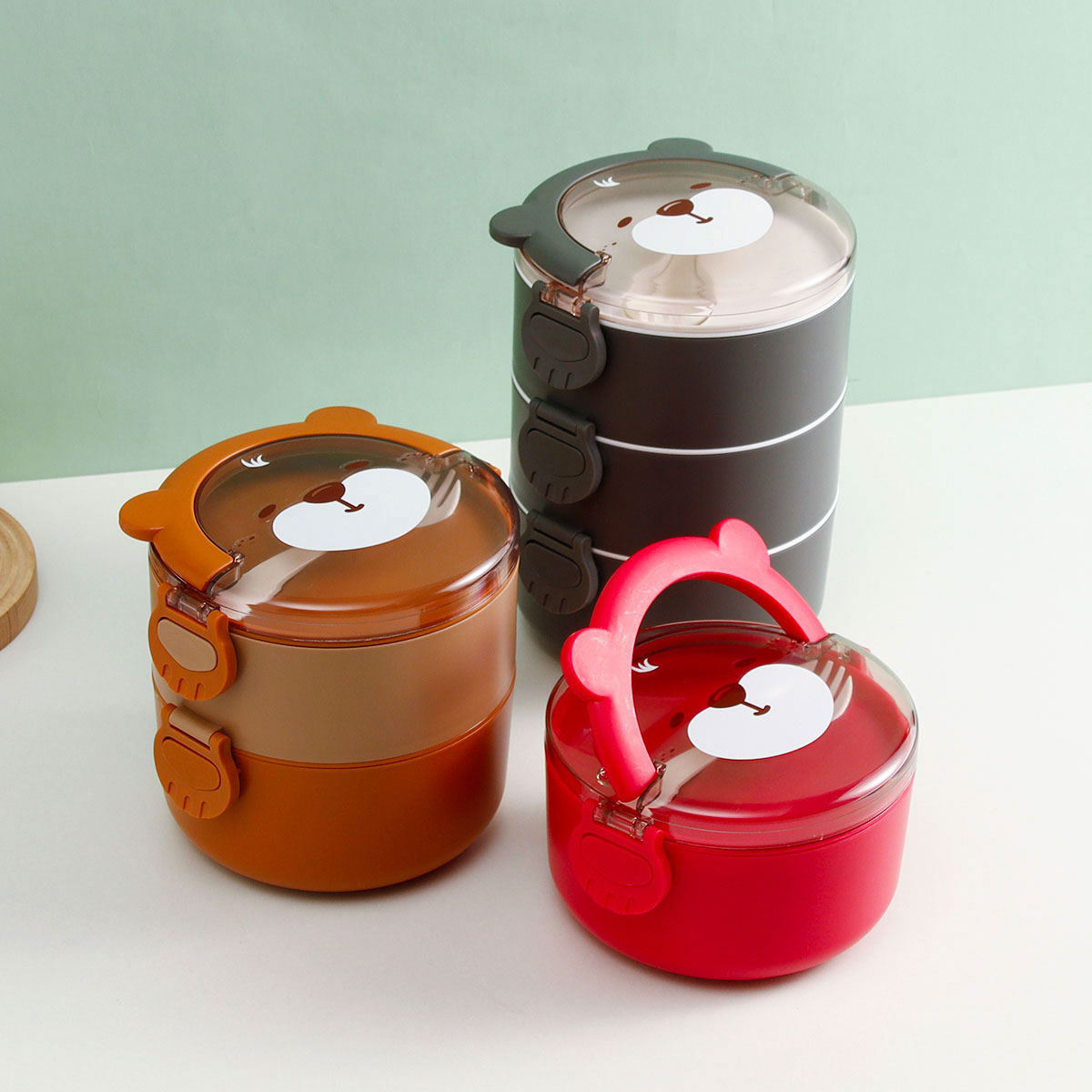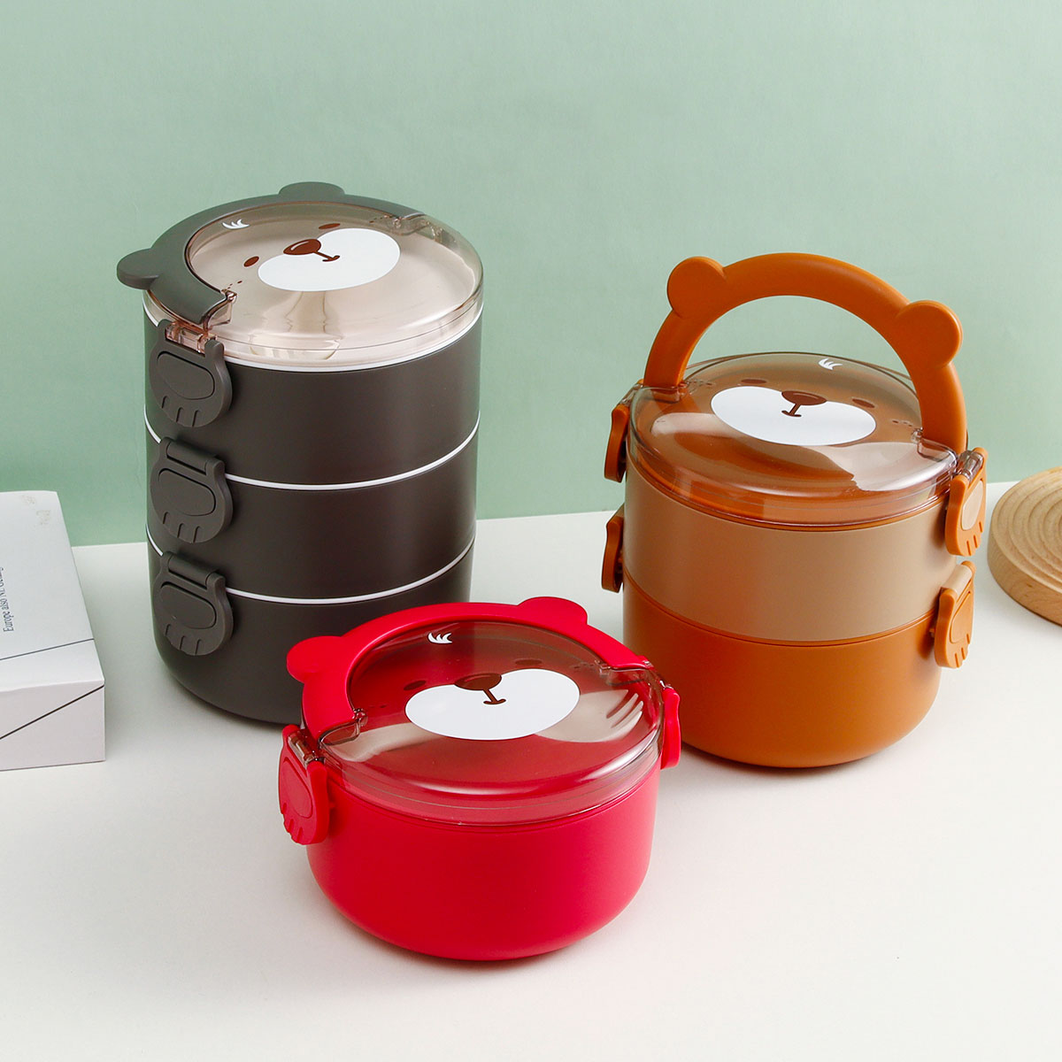 樂味熊圓形單層/雙層/三層不銹鋼飯盒