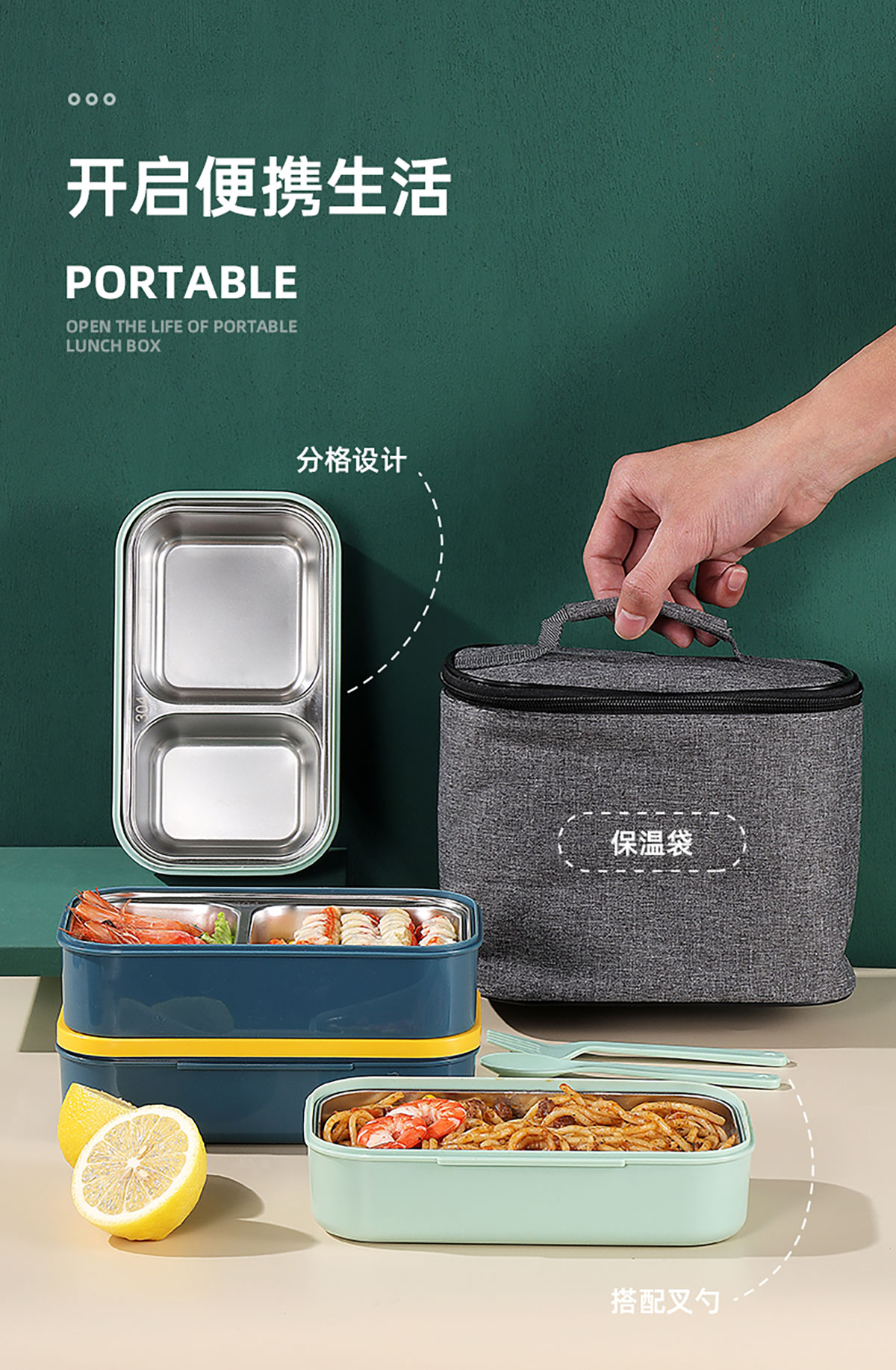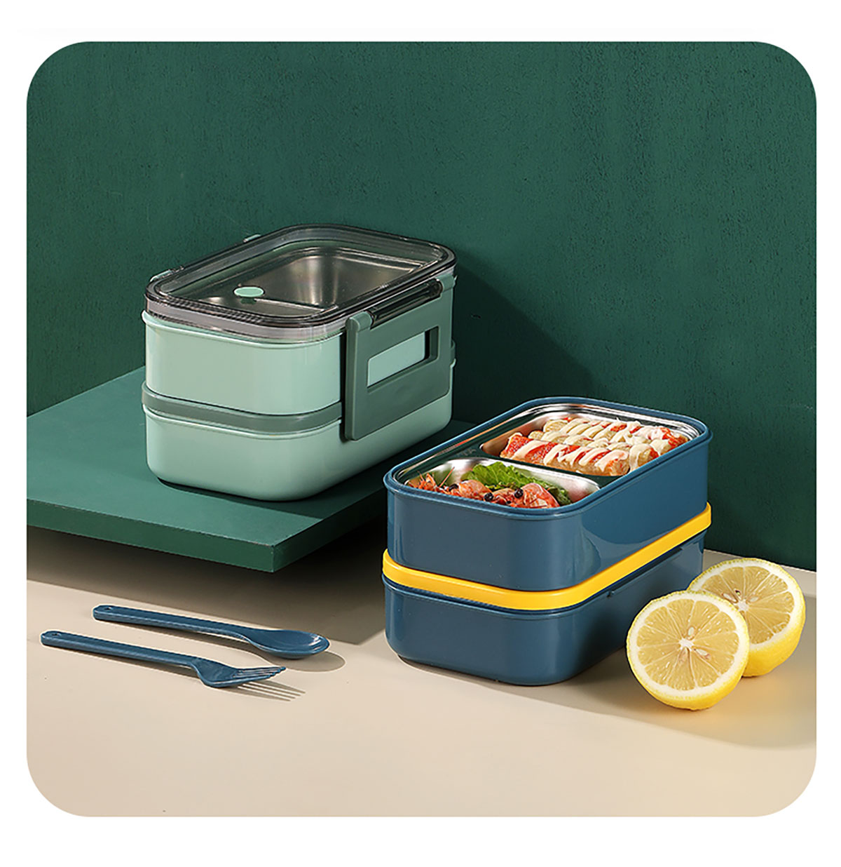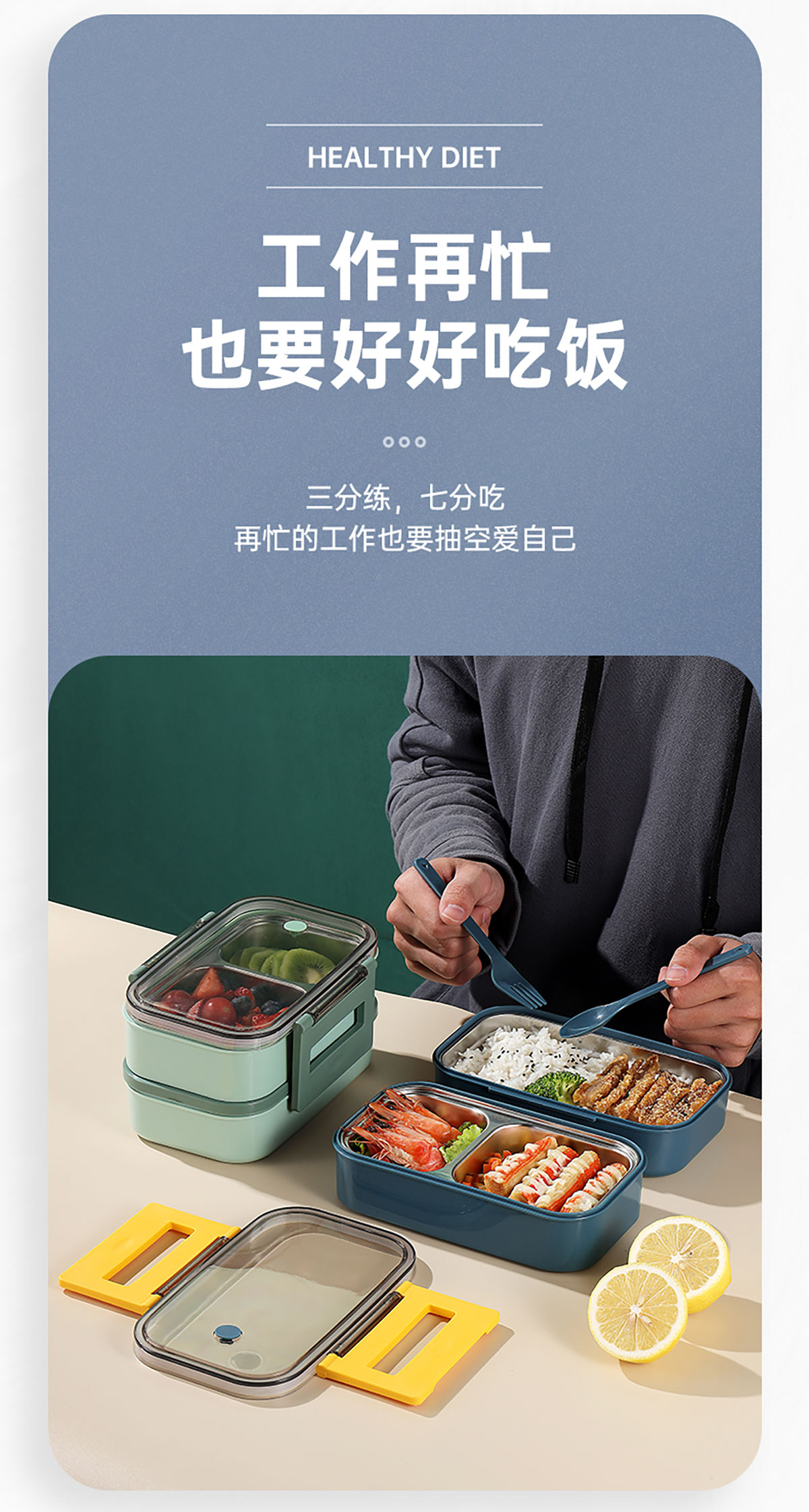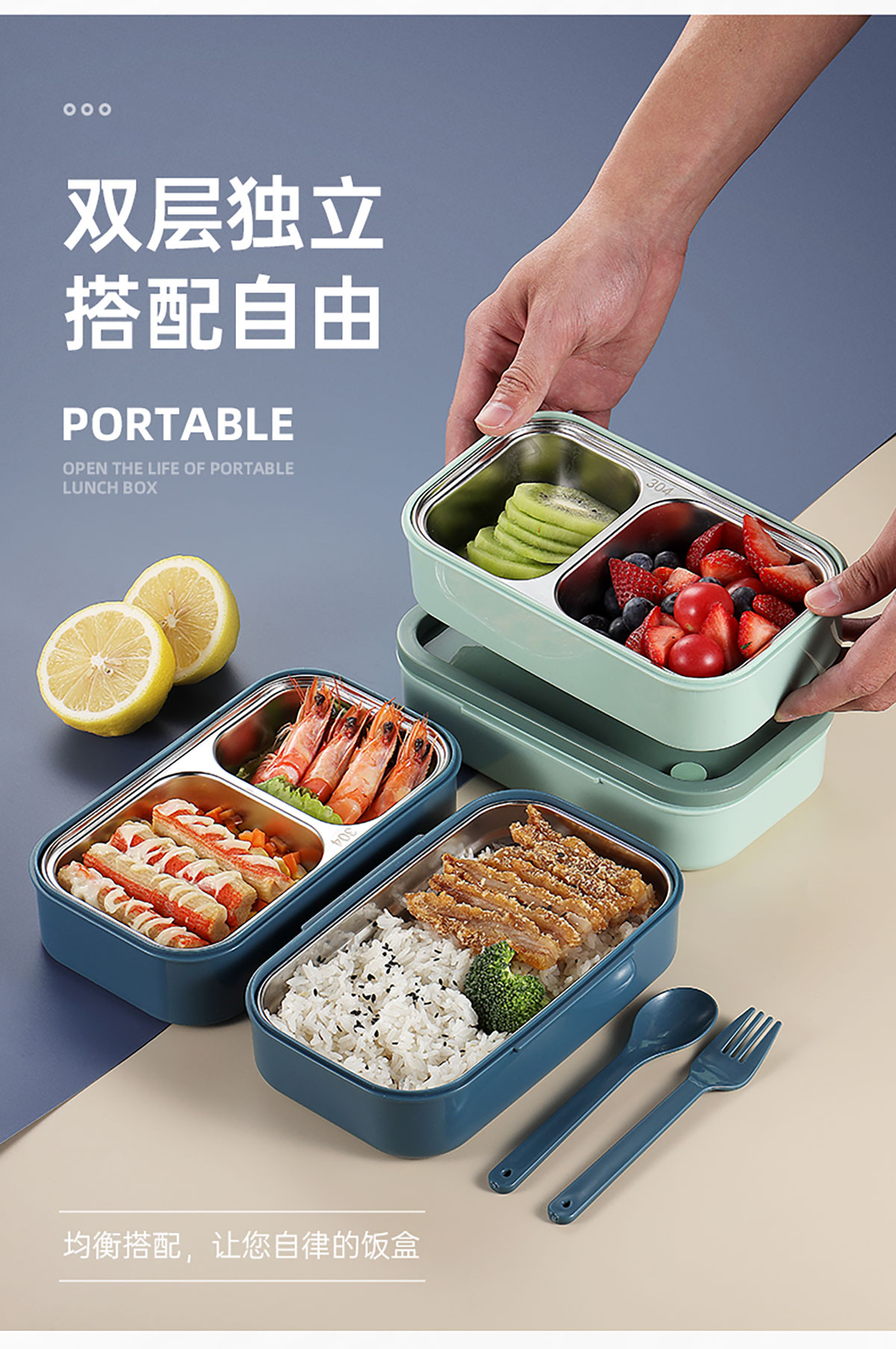 莫蘭迪雙層分格不銹鋼飯盒1000ml