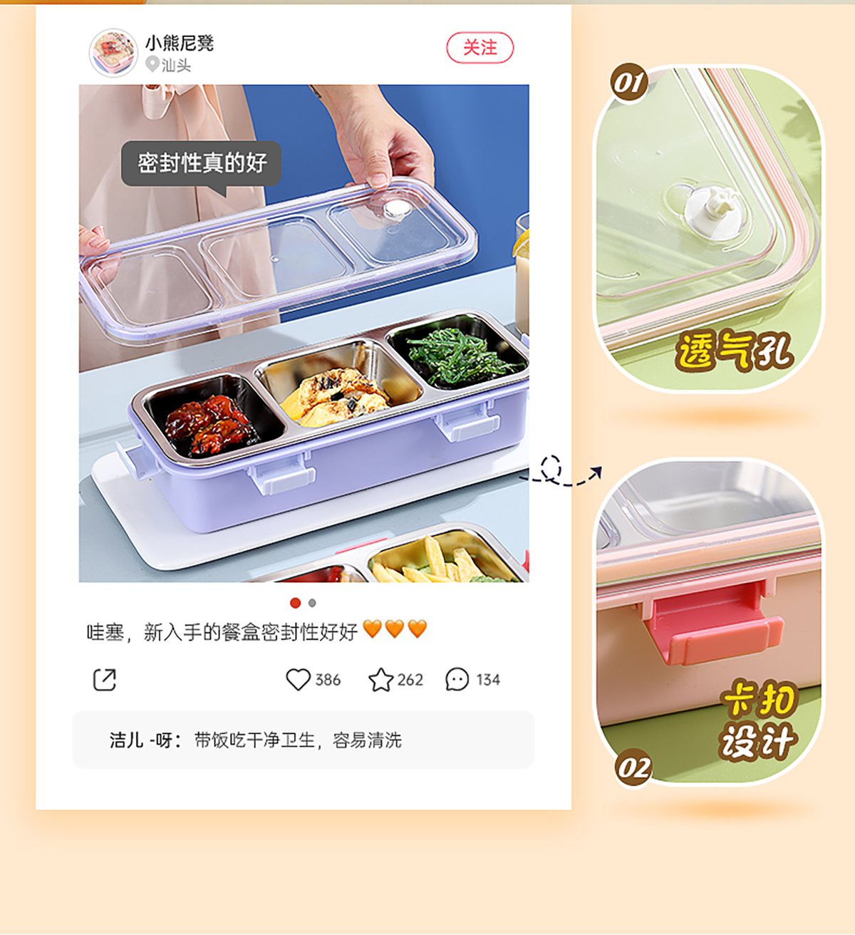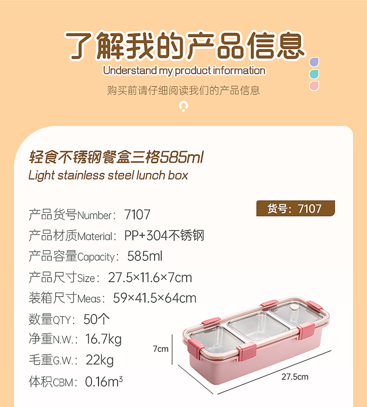 輕食不銹鋼餐盒三格585ml