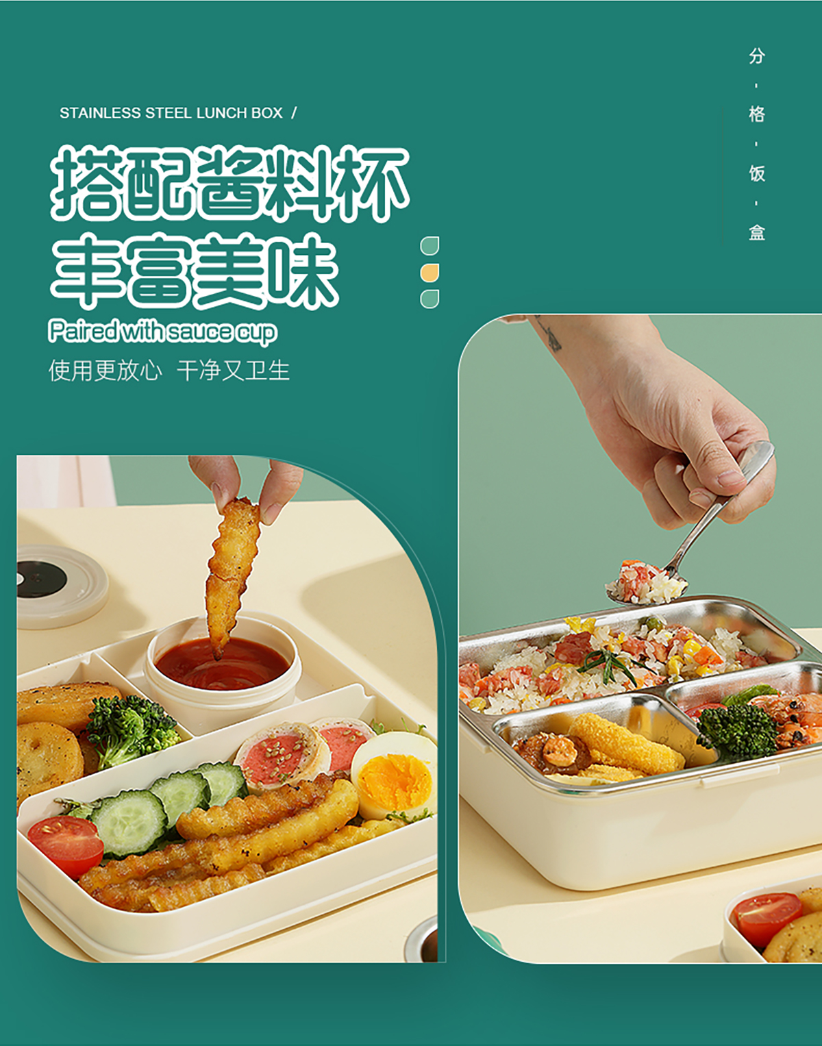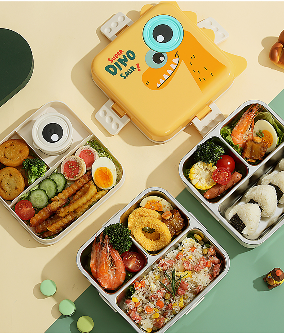 恐龍正方形不銹鋼飯盒1120ml+70ml
