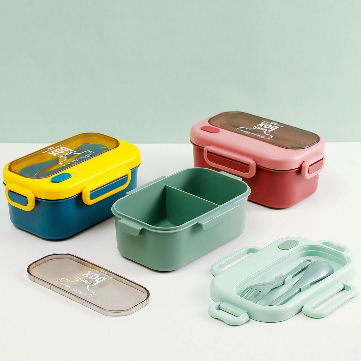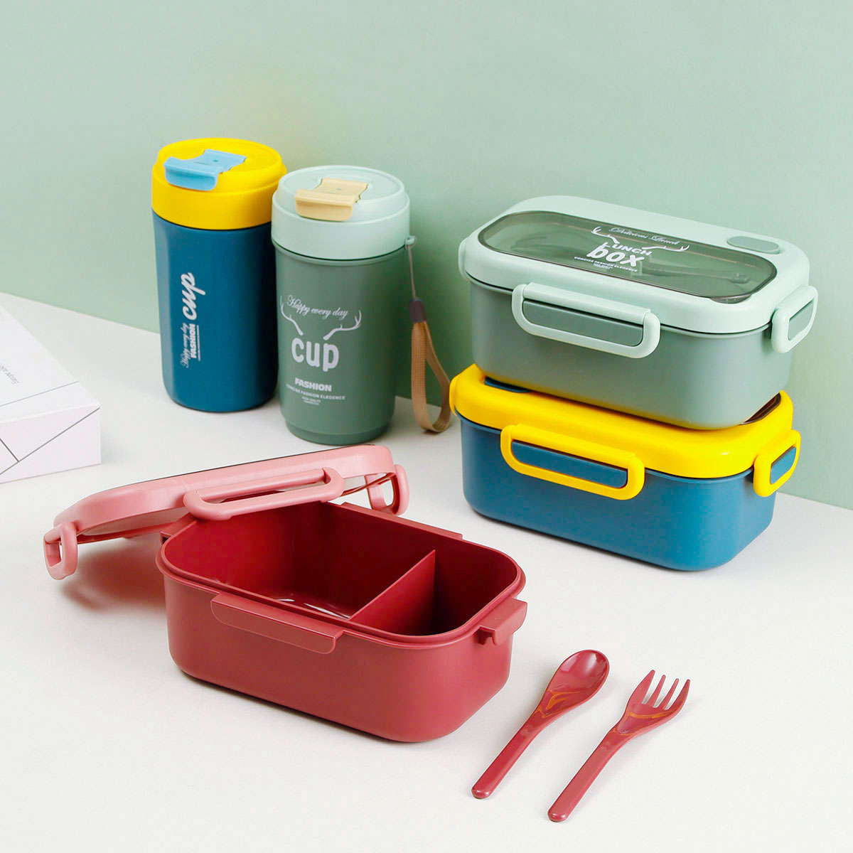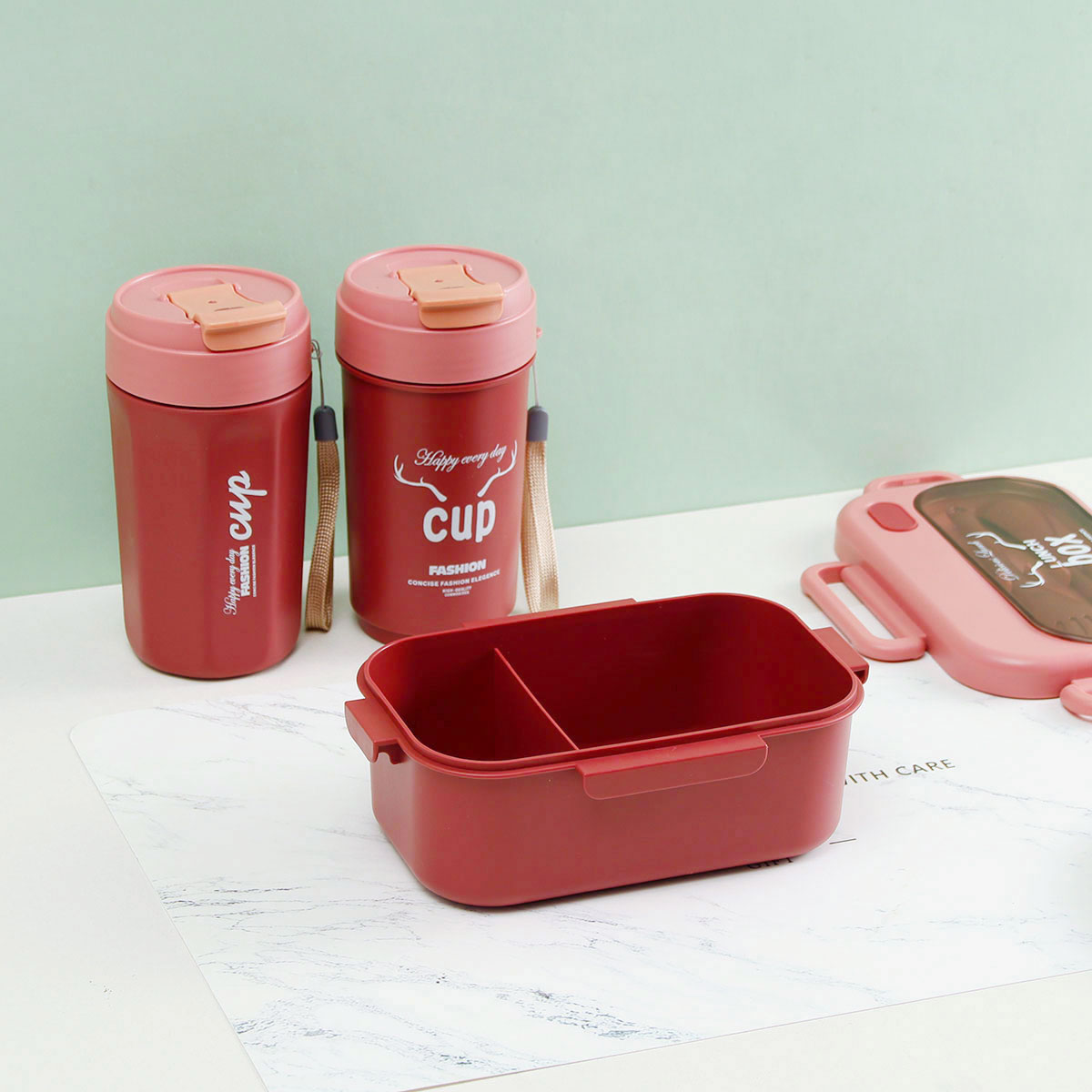 品悅長方單層分格密封飯盒(1000ml)+圓形/八角隨行杯(500ml)