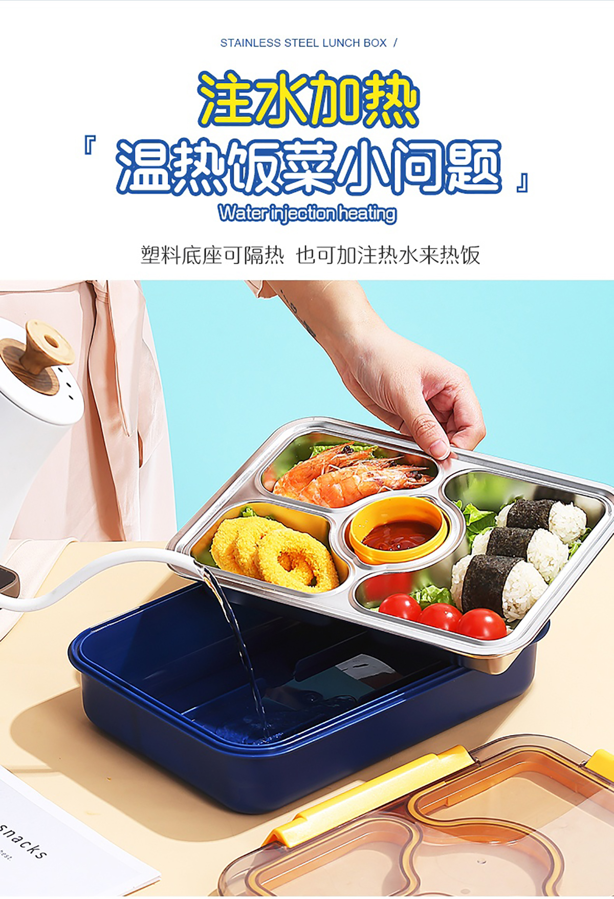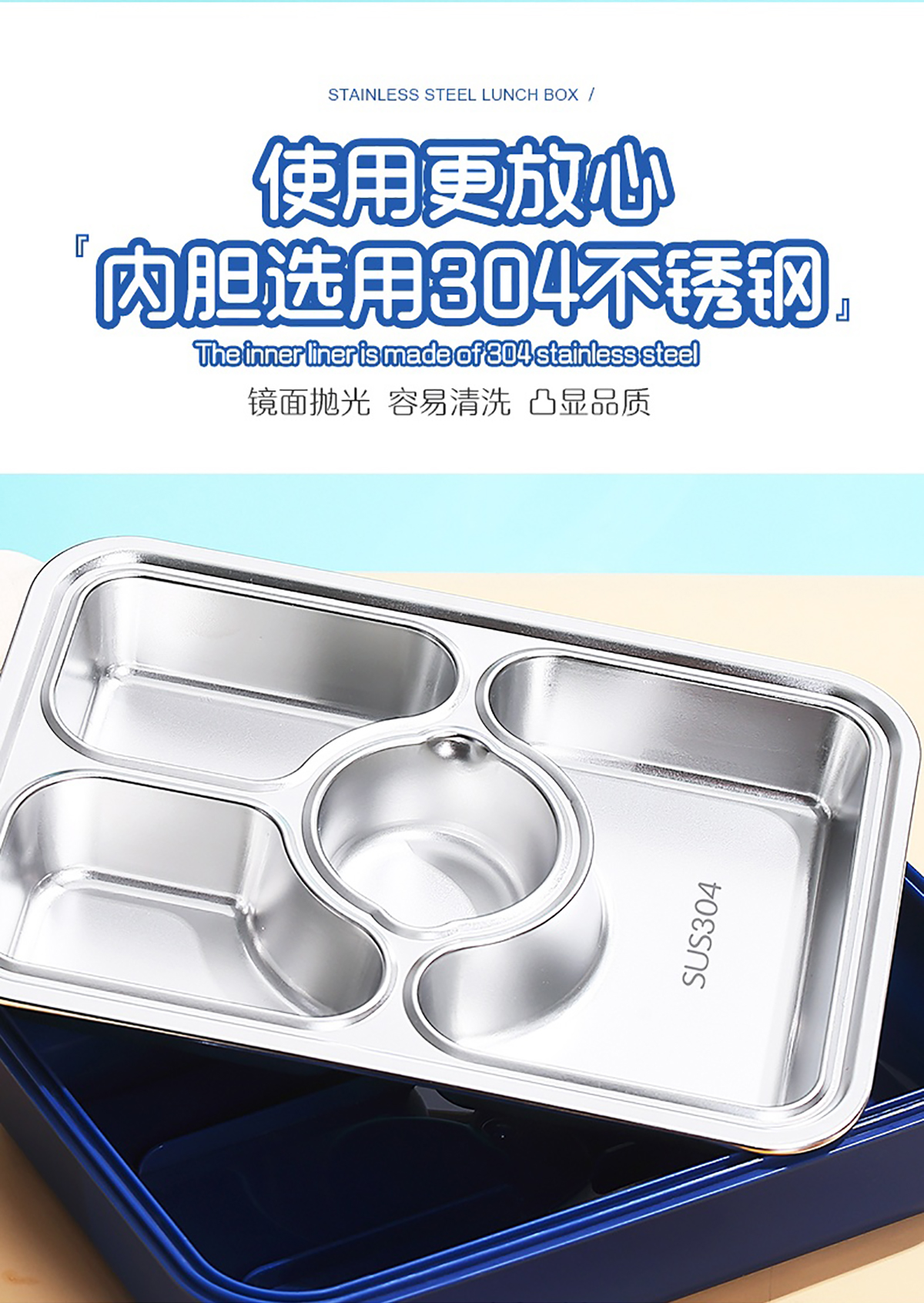 950ml獨立密封不銹鋼餐盒(3格+PP碗80ml+不銹鋼勺筷)