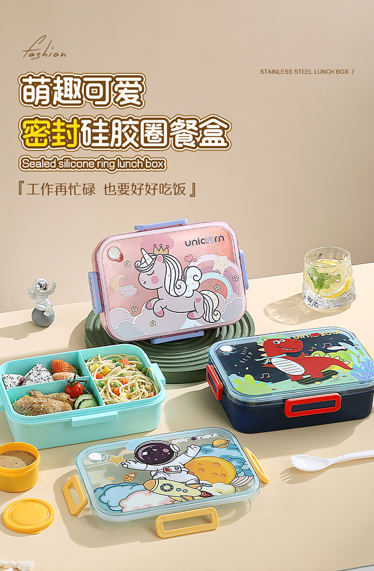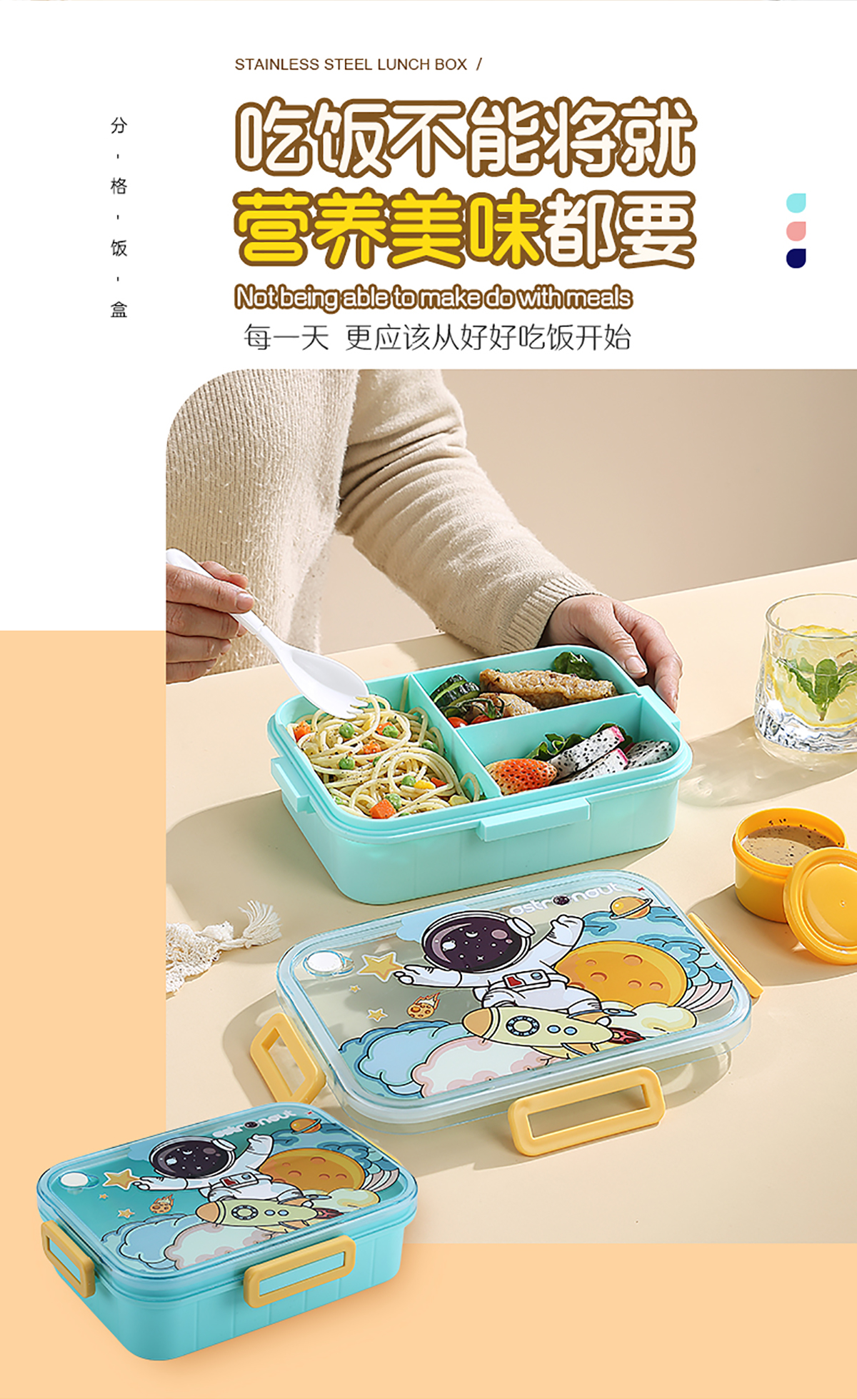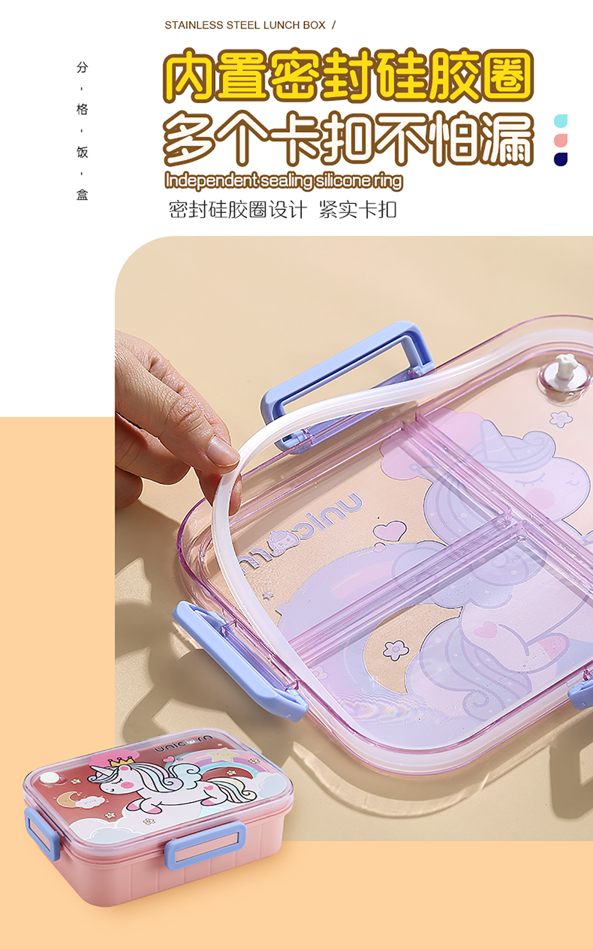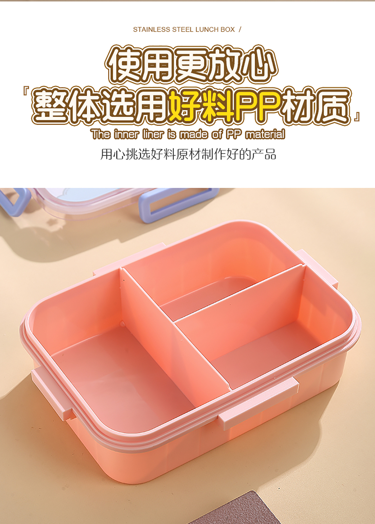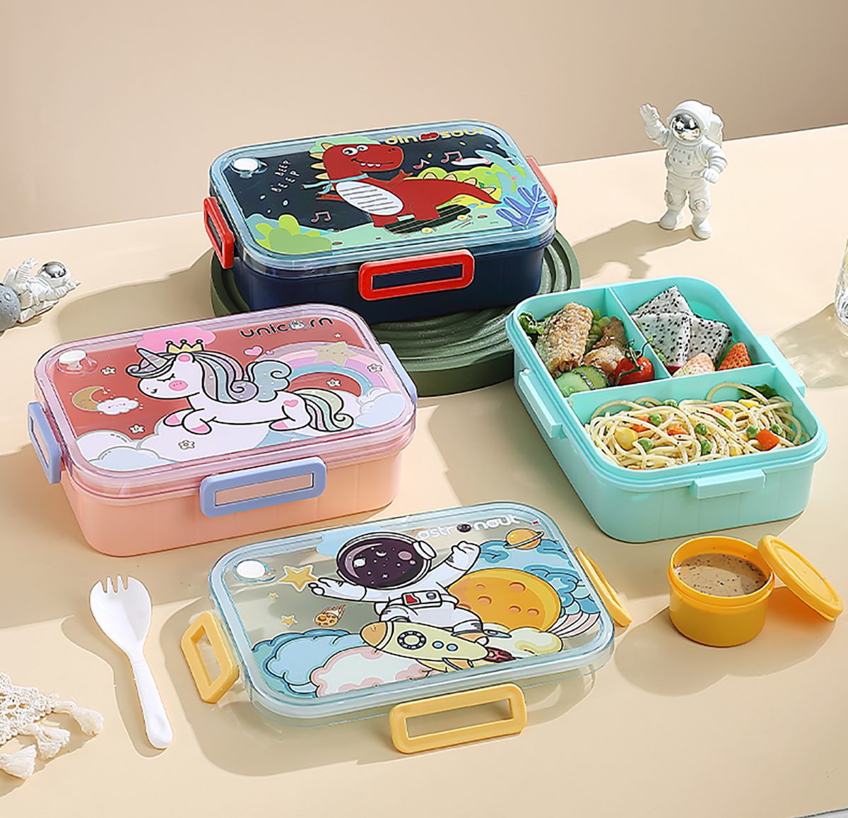 1.2L萌趣密封餐盒(3格+沙拉杯80ml+PP勺子)