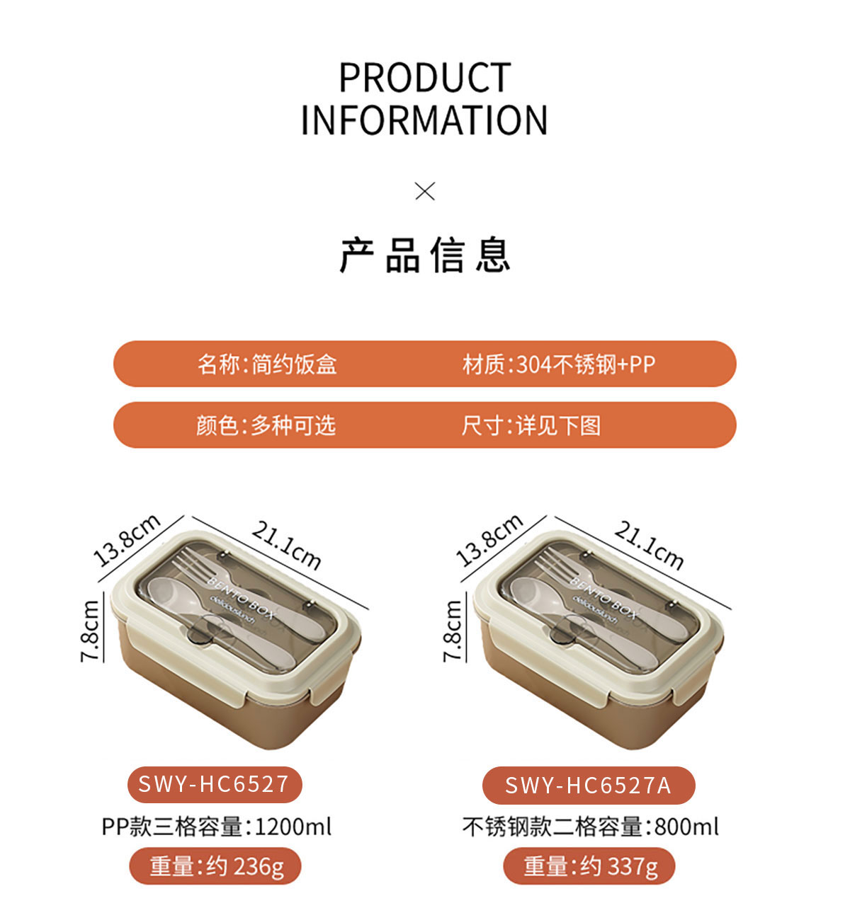 簡易便當(dāng)盒(PP款/PP加高款/不銹鋼款/套裝款) 2024新色