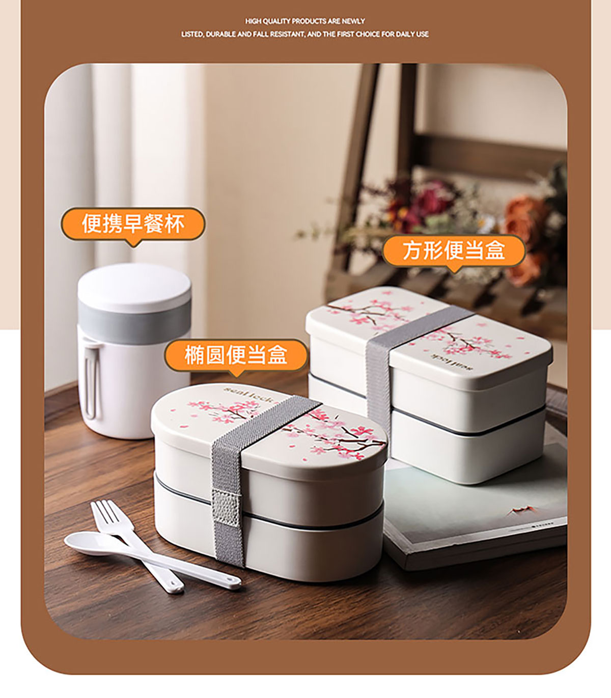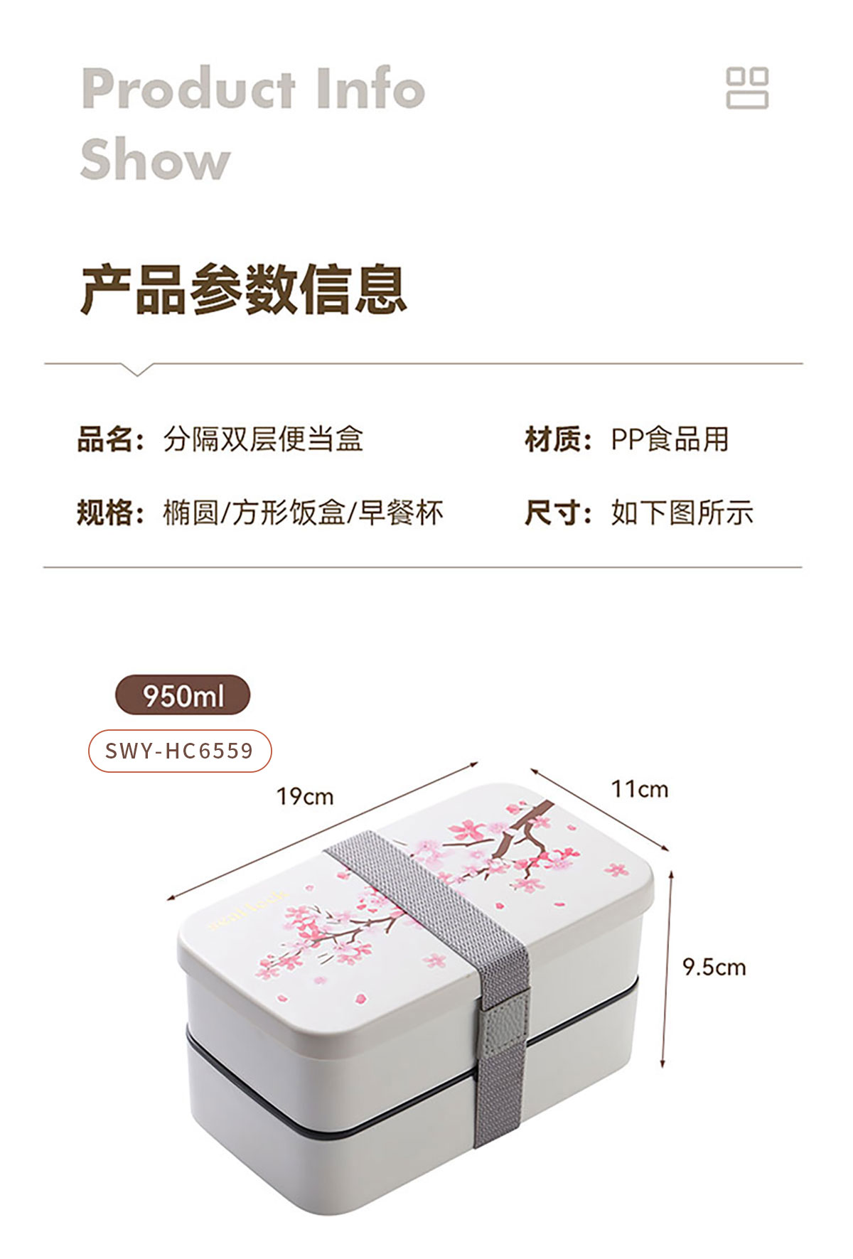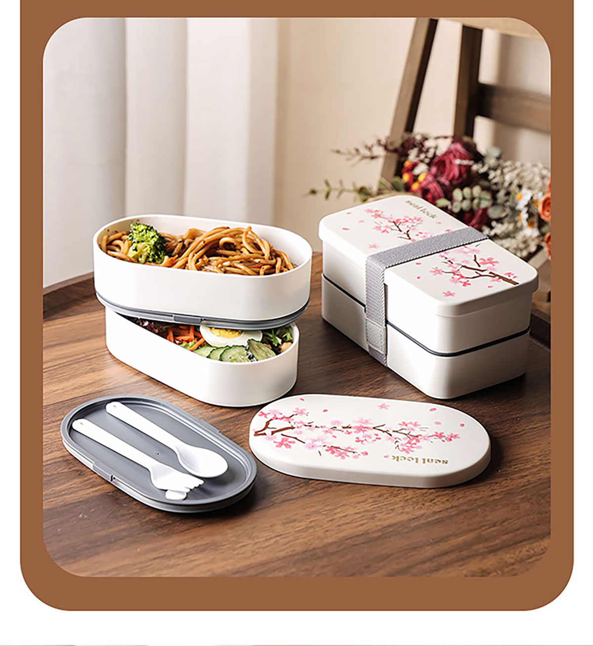 春日櫻花長方形/橢圓形便當(dāng)盒