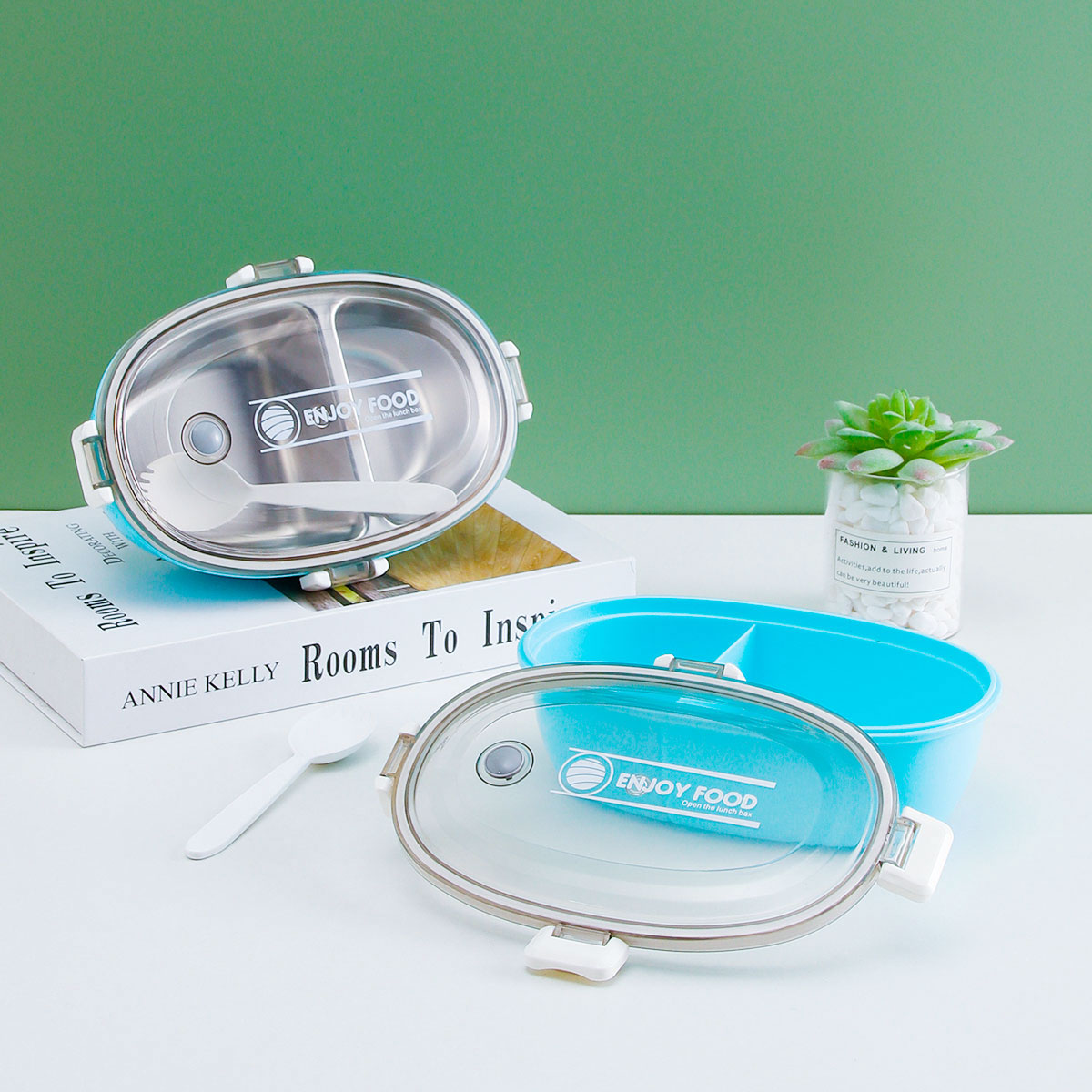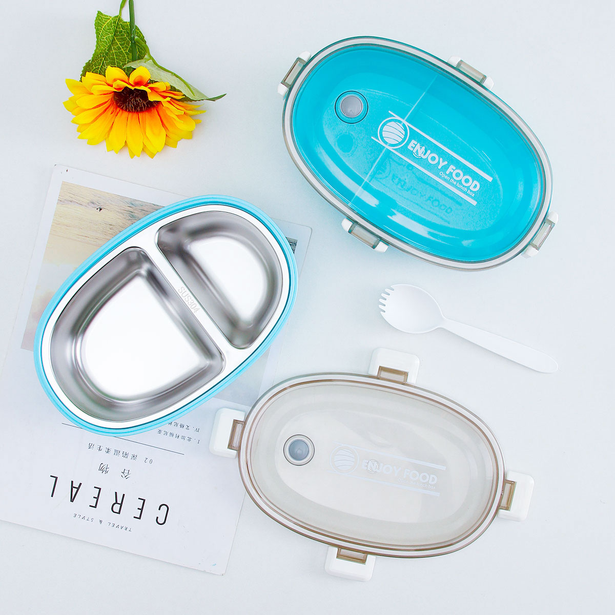 蛋型印花不銹鋼/塑料飯盒