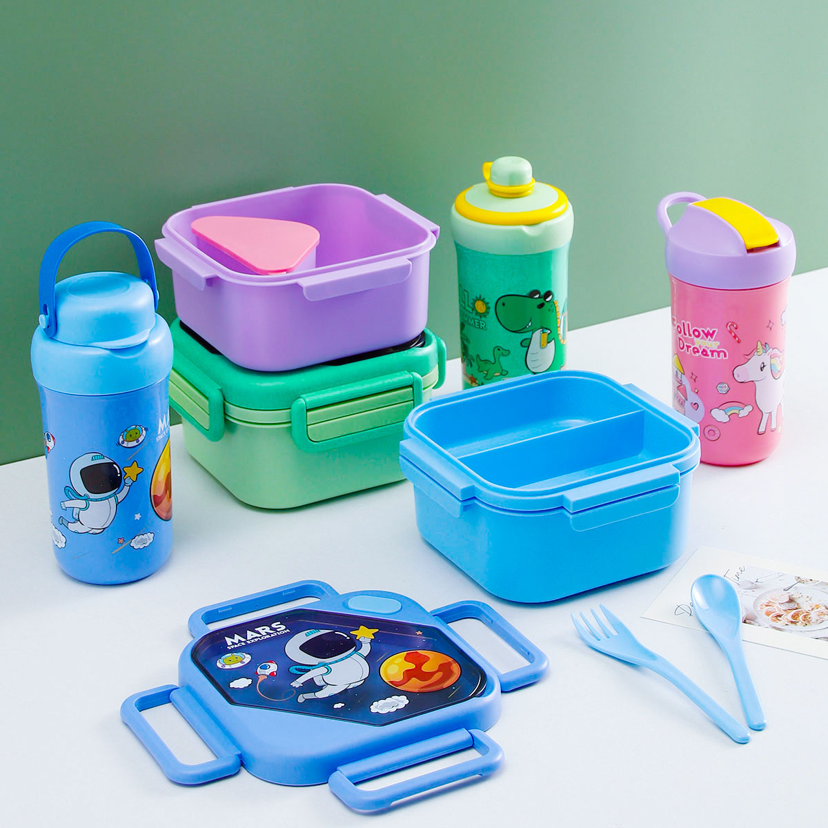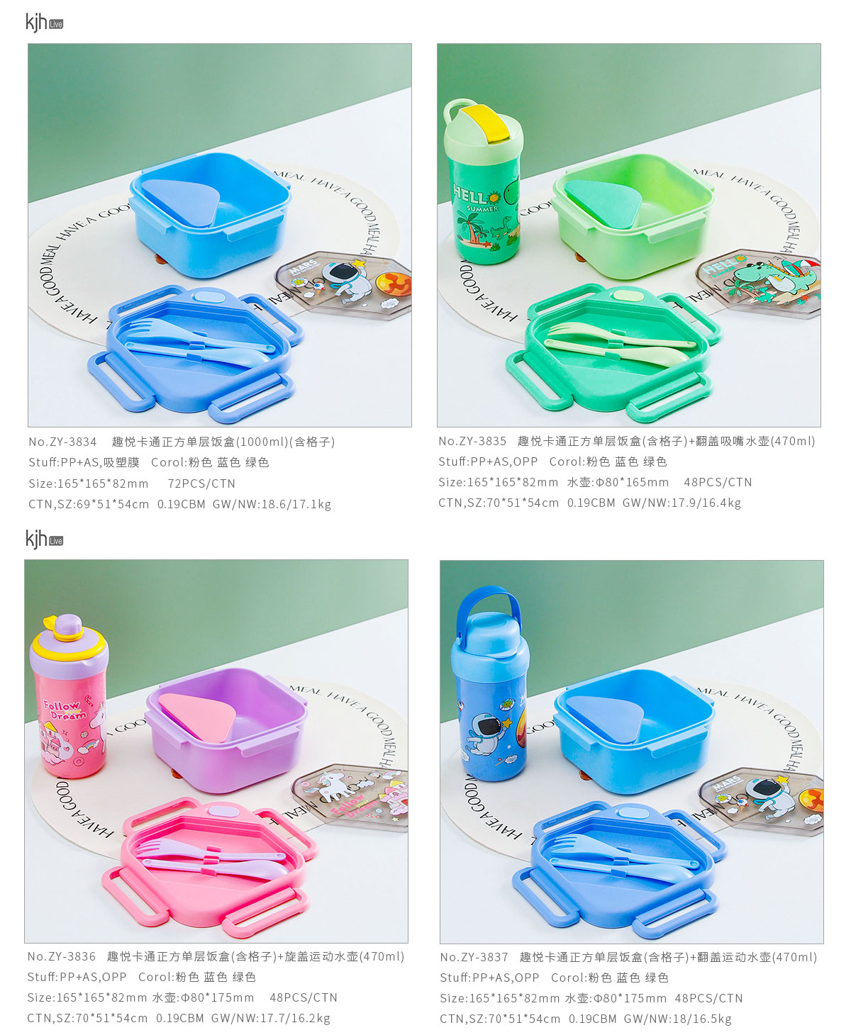 趣悅卡通正方單層(含格子)雙層飯盒+翻蓋吸嘴/旋蓋運(yùn)動/翻蓋運(yùn)動水壺