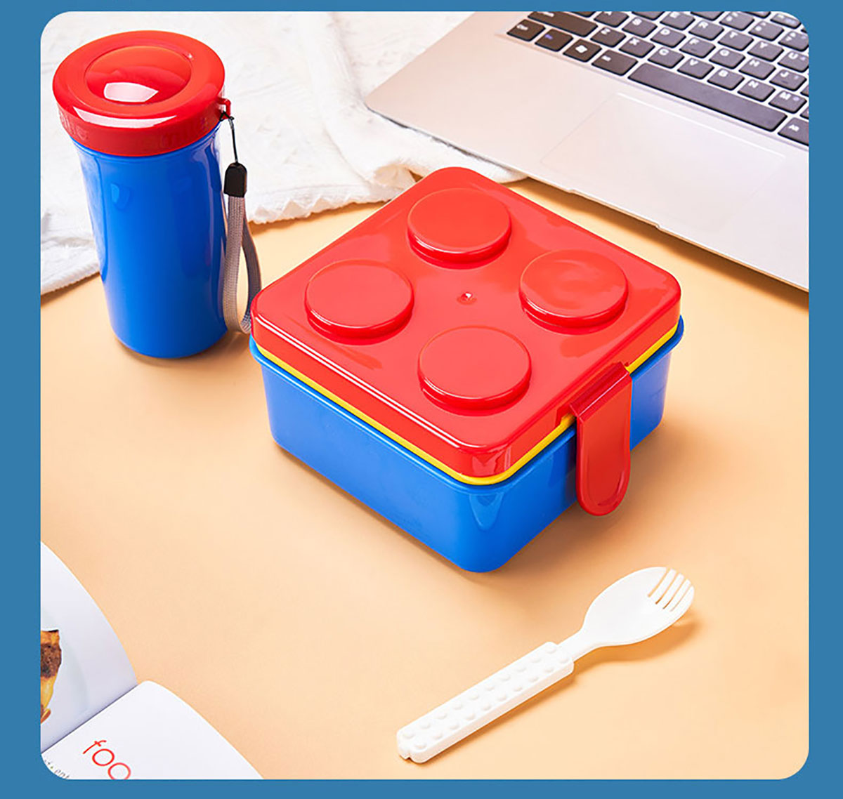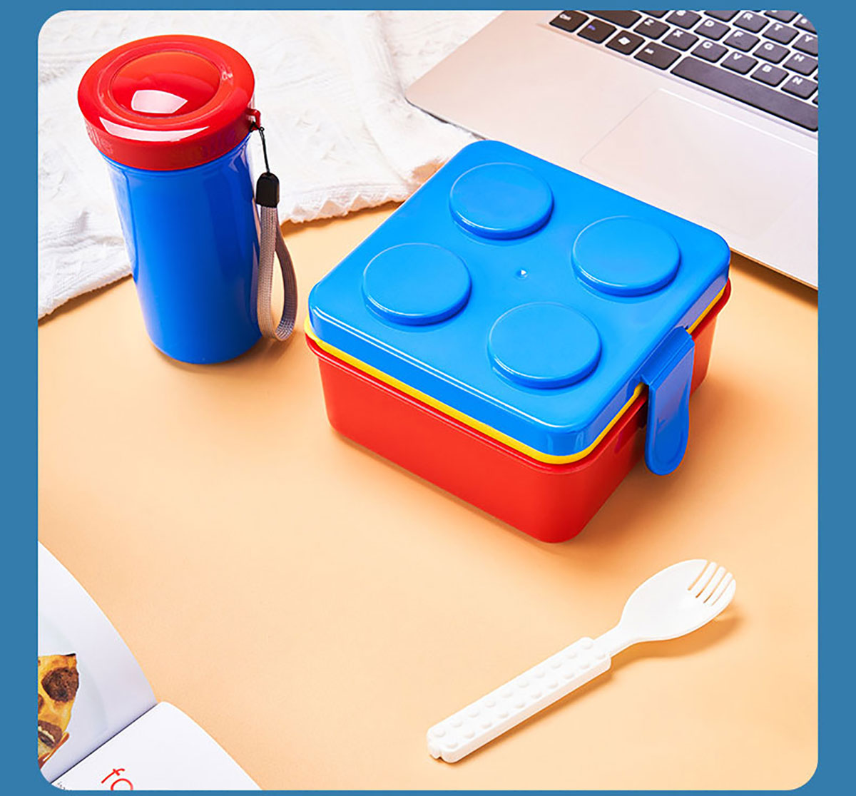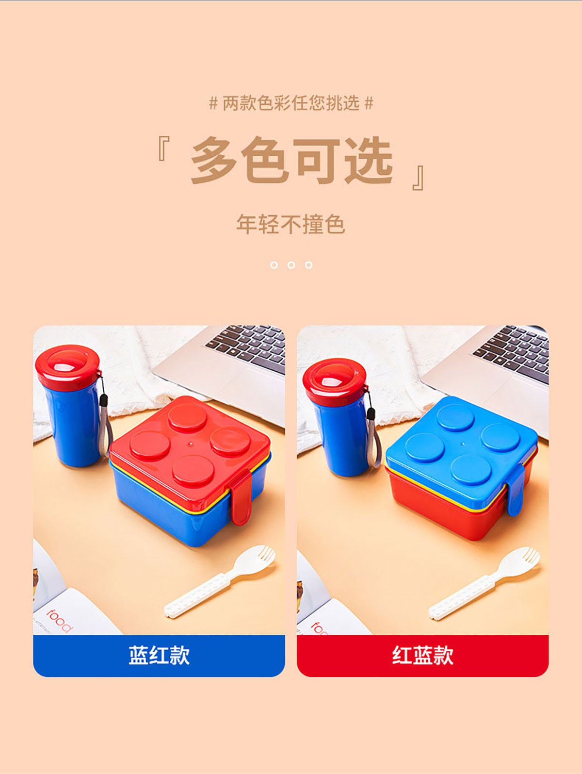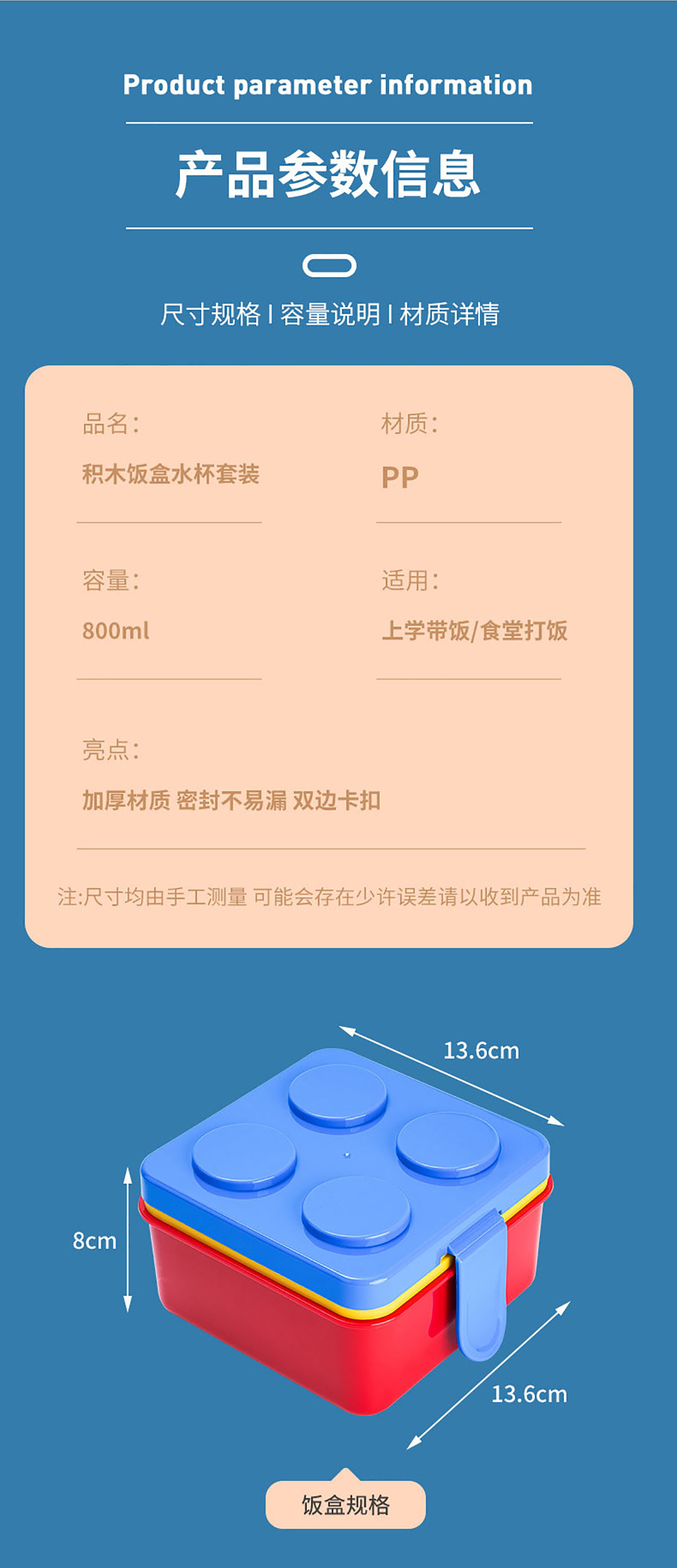 方形積木飯盒+水杯套裝叉勺飯盒+水杯