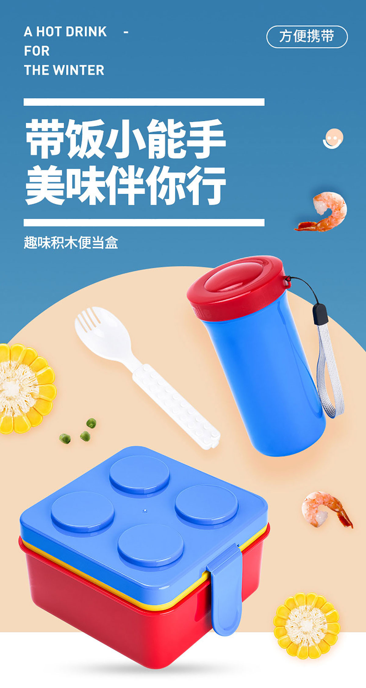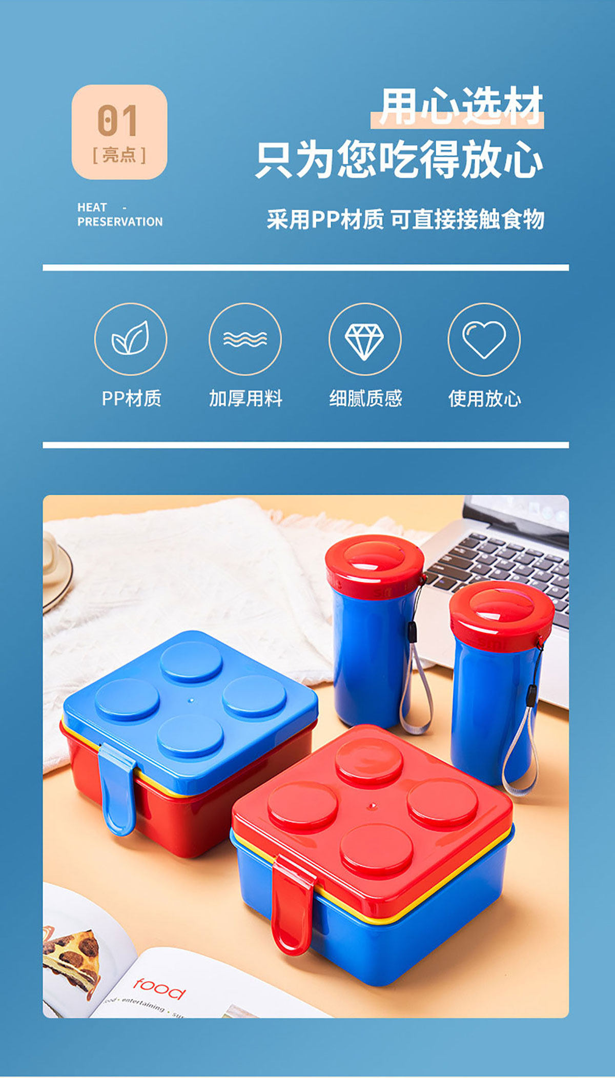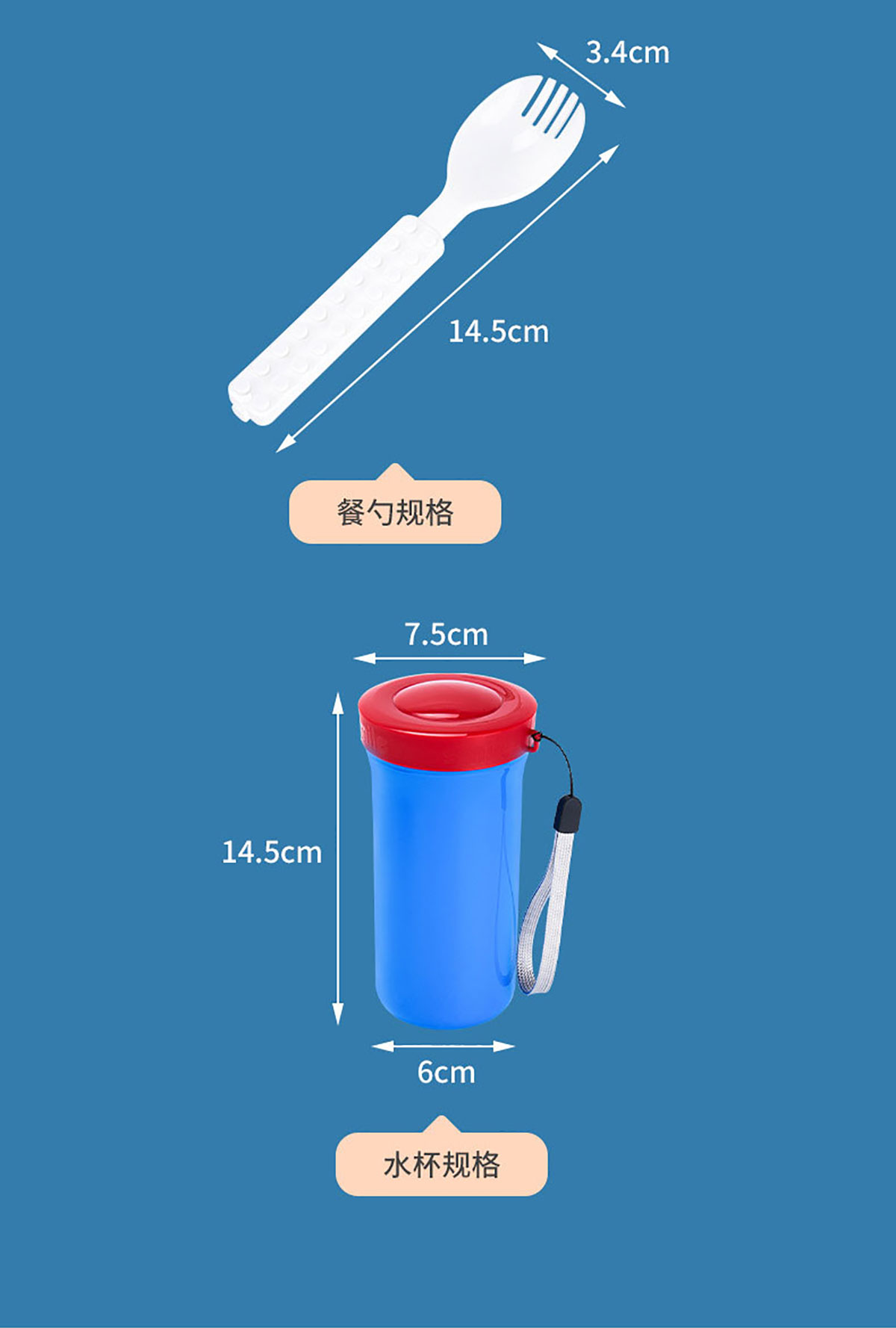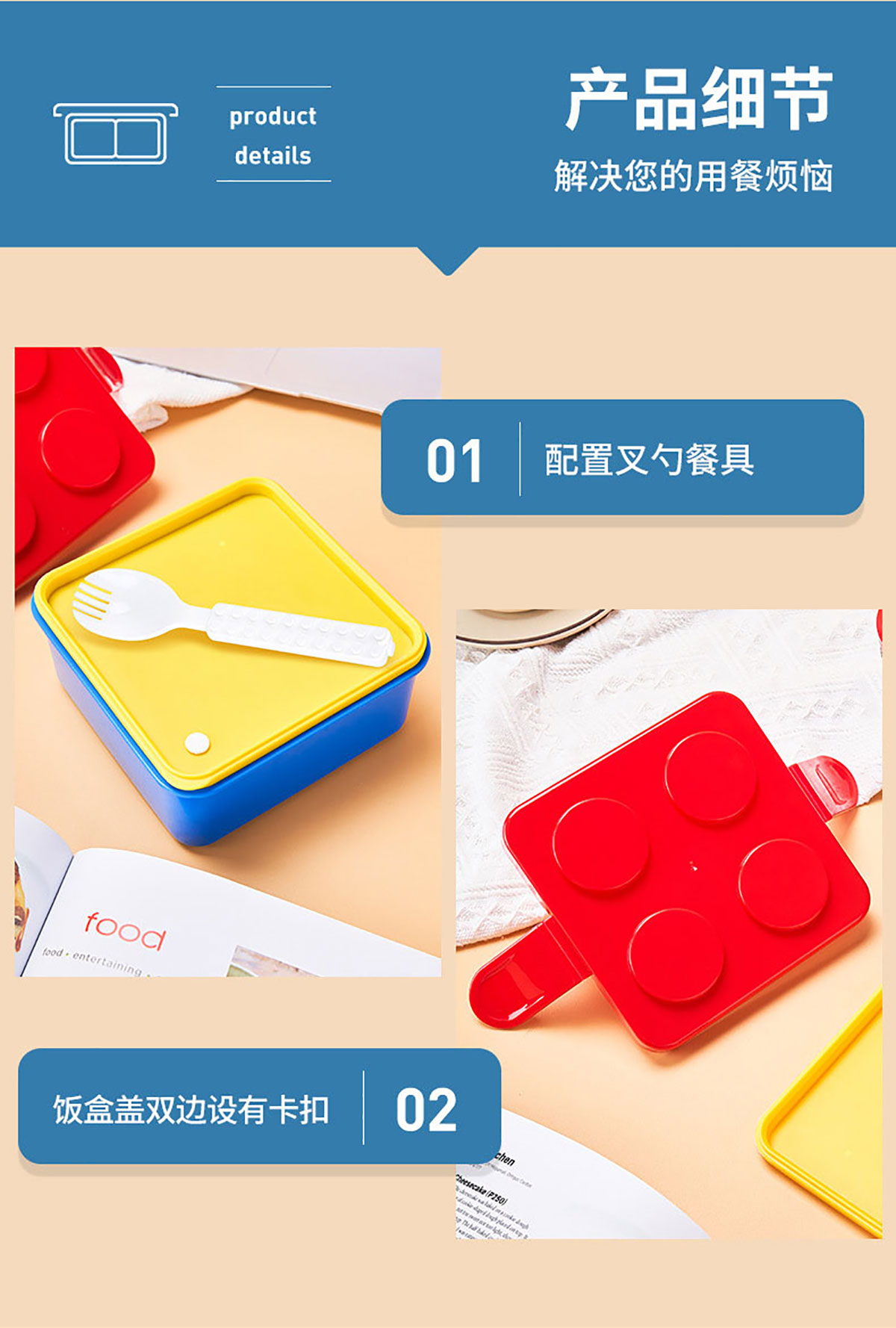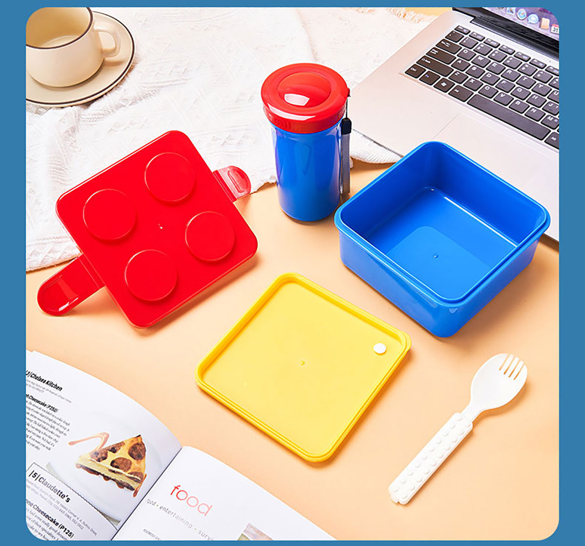 方形積木飯盒+水杯套裝叉勺飯盒+水杯