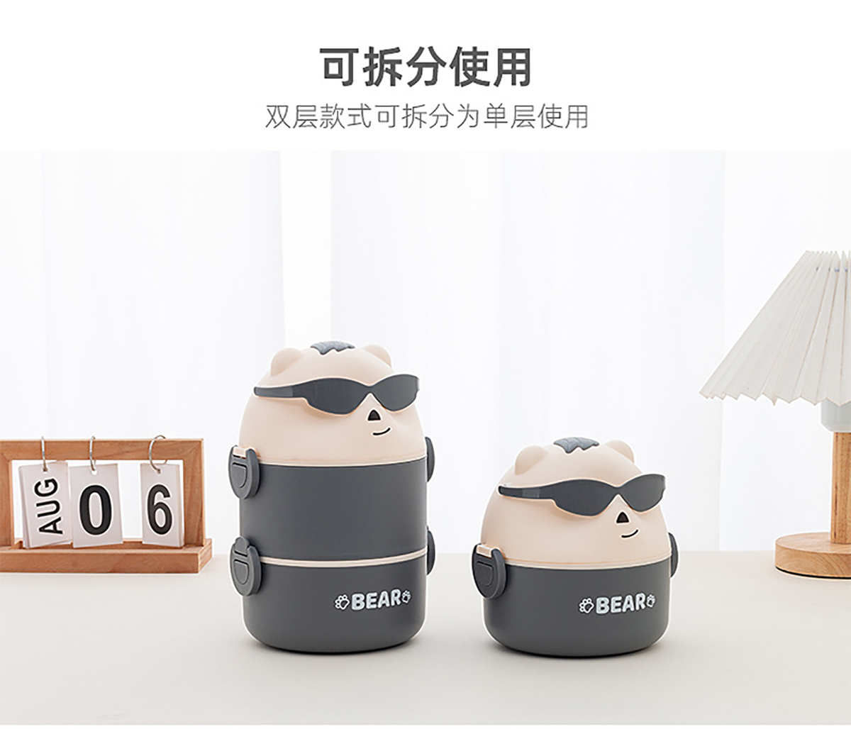 墨鏡熊單層/單層加水杯/雙層/雙層加水杯便當盒