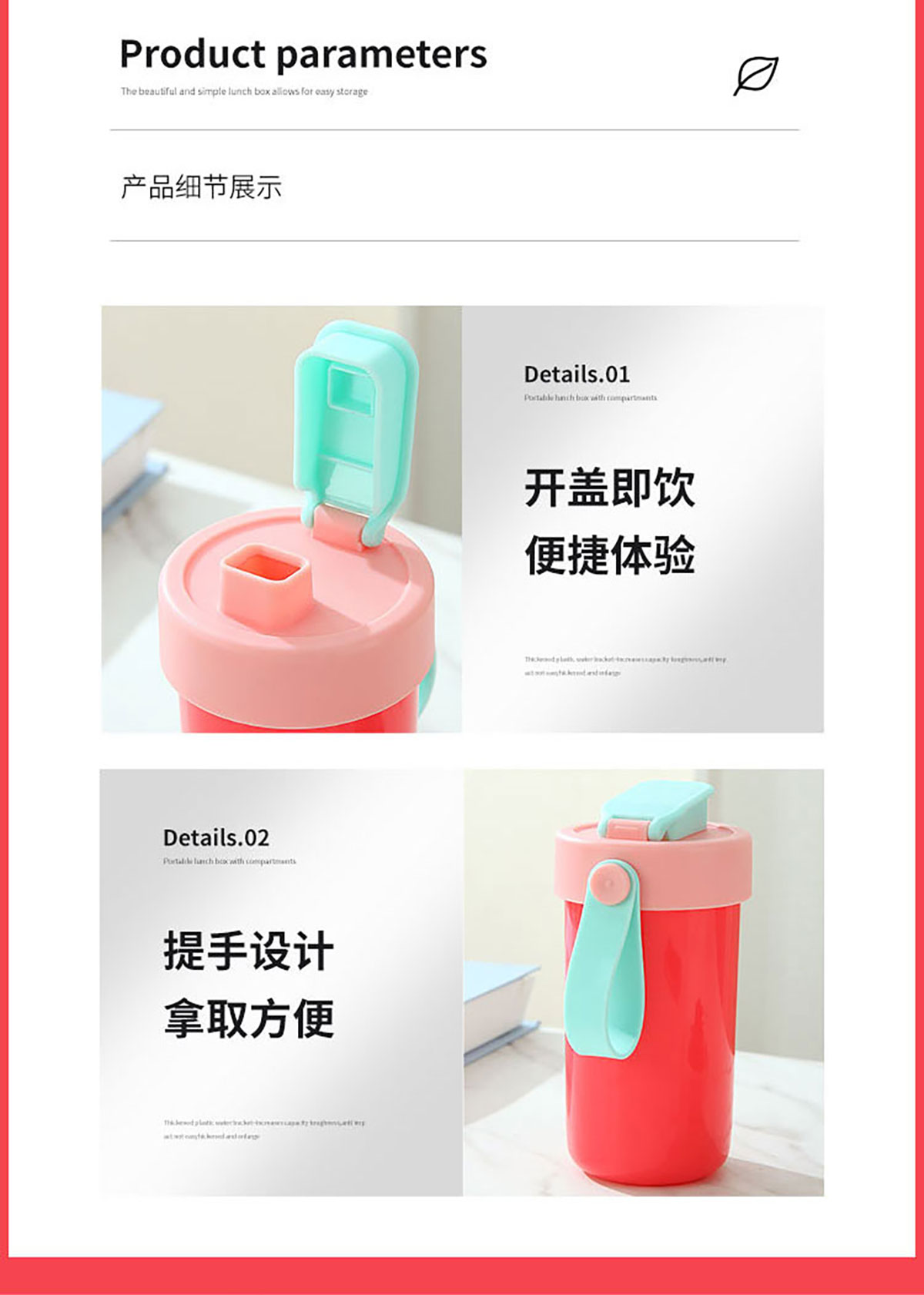 SWY-T214(套裝款):飯盒:215*149*71mm/1000ml 水壺:直徑8.2*高16.1/480ml