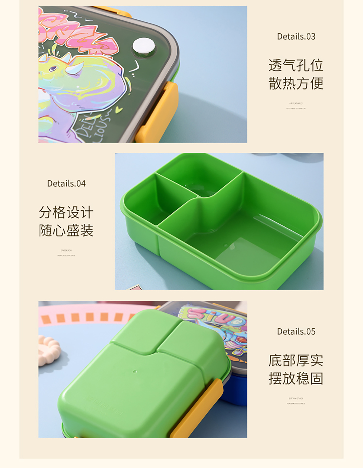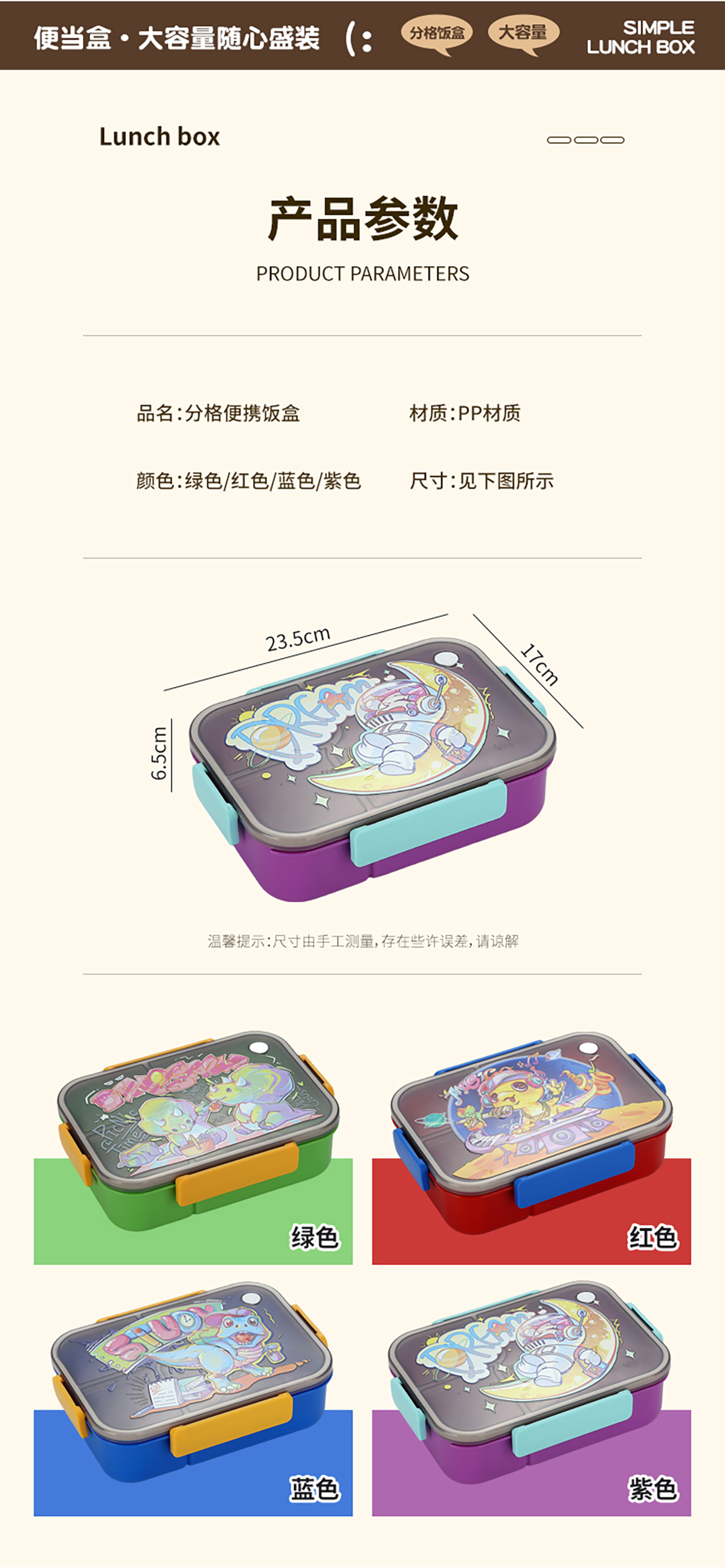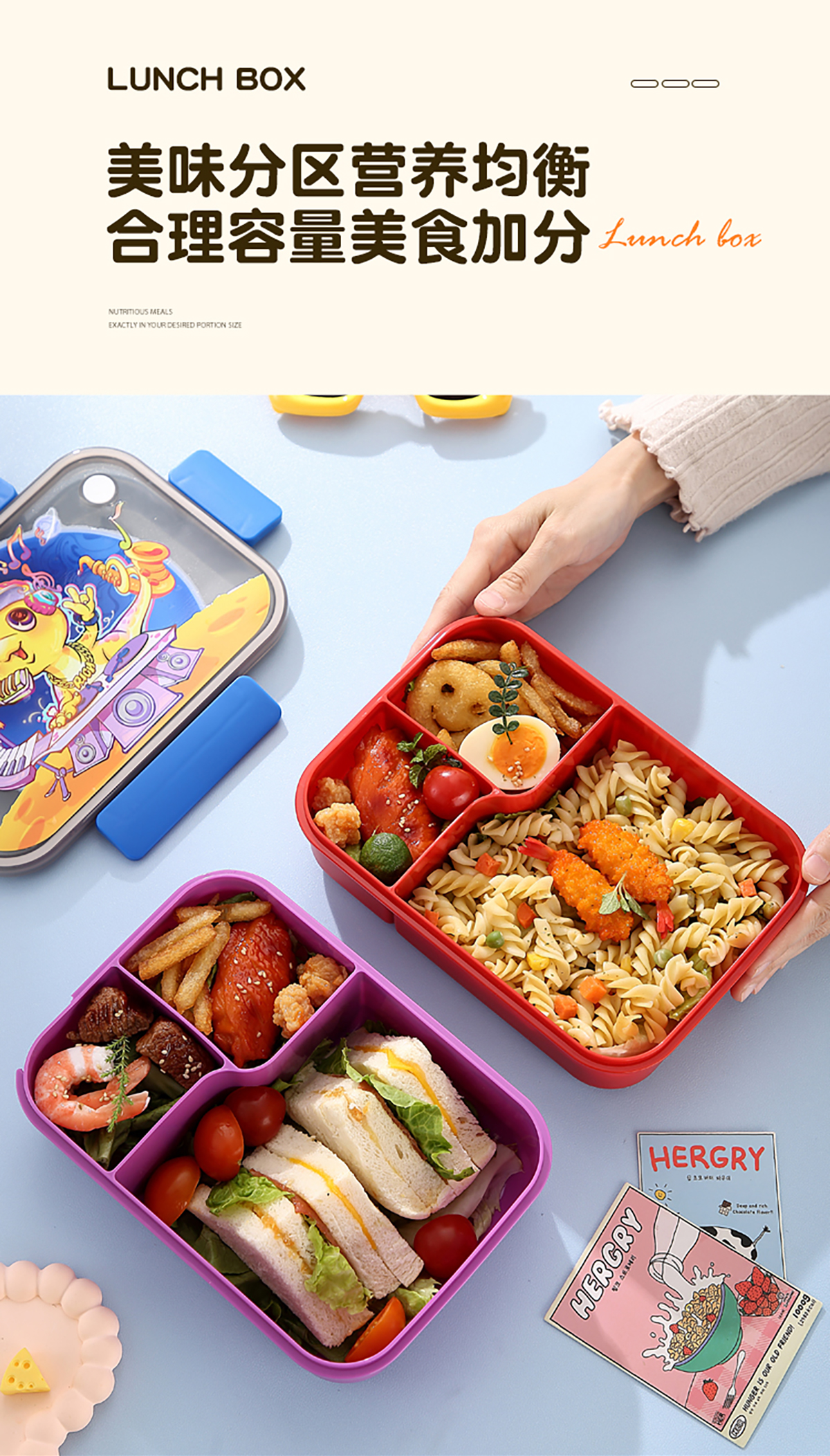 卡通透明蓋分格飯盒1450ml