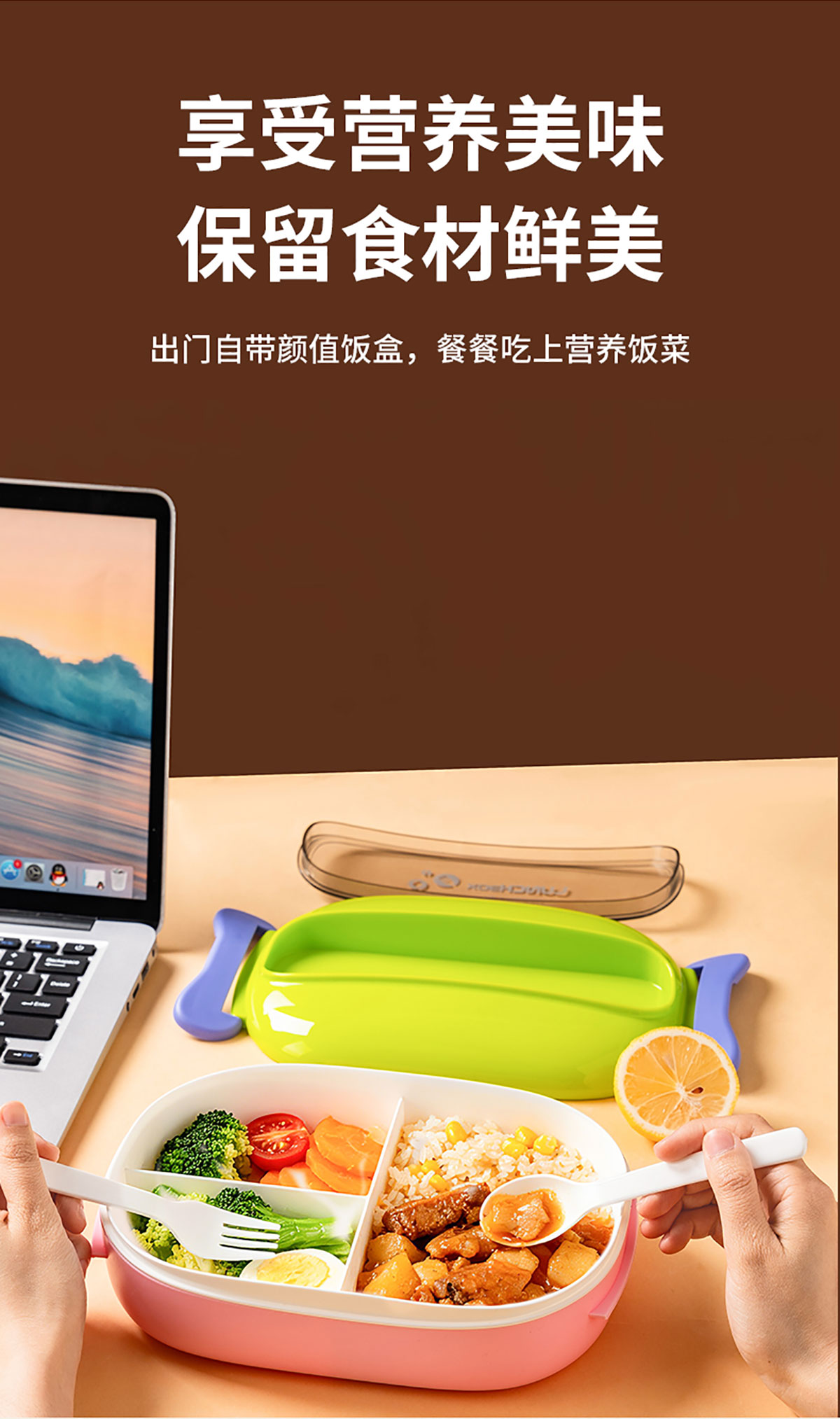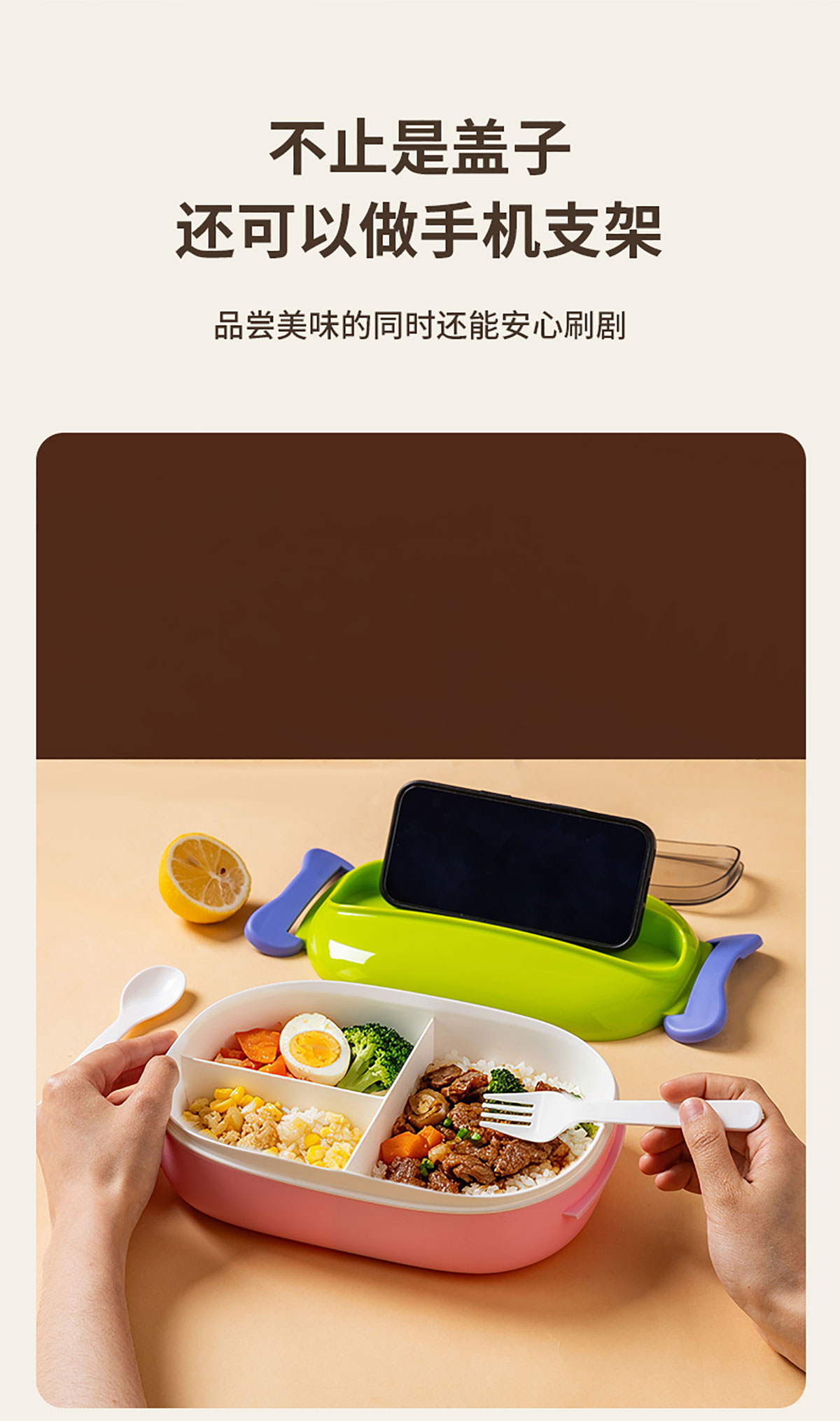 馬卡龍分格塑料飯盒1300ml